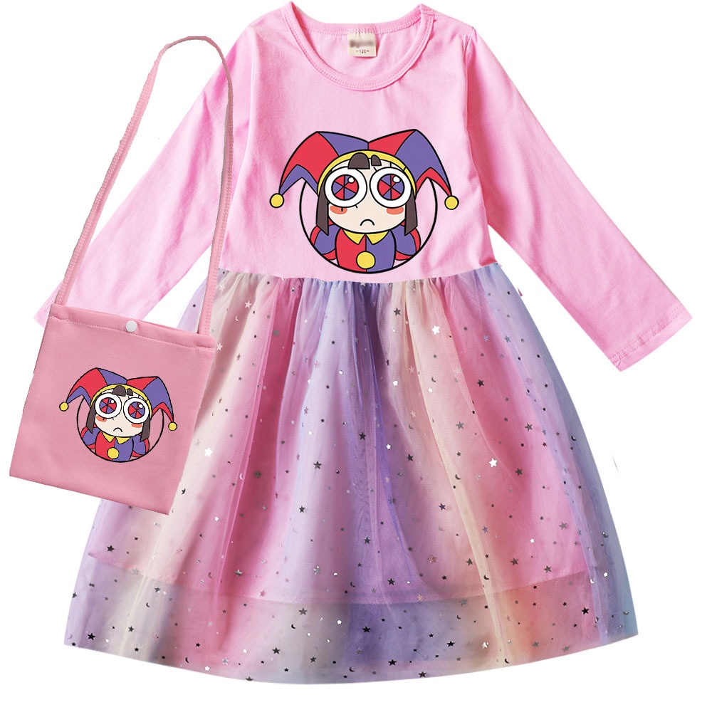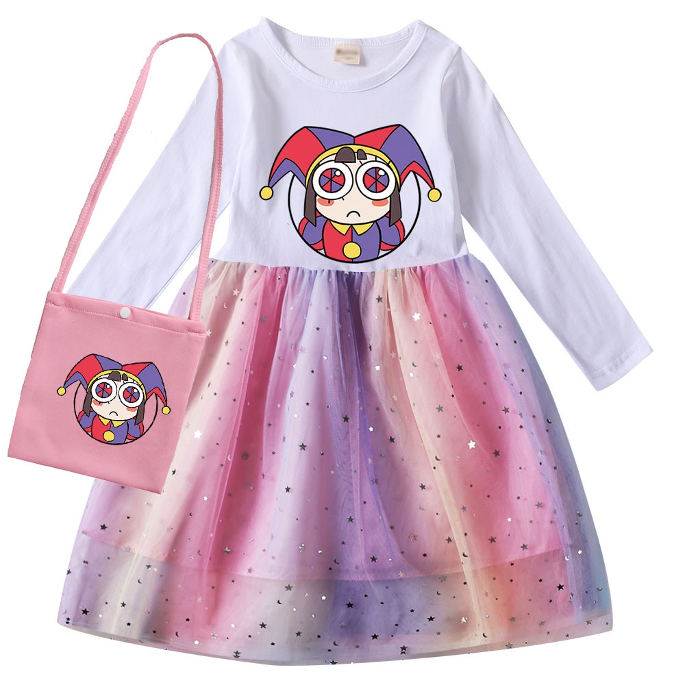 The Amazing Digital Circus Cosplay Costume Dress for Kids Girl Pomni Cartoon Bag Doll Princess Baby Christmas Gifts Long Sleeve Clothes Children Wedding Party Dresses