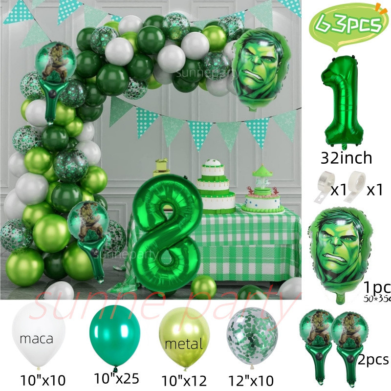 The Avengers Superhero Hulk Balloons Garland Arch Kit Green Number Balloon Kids Birthday Party Needs