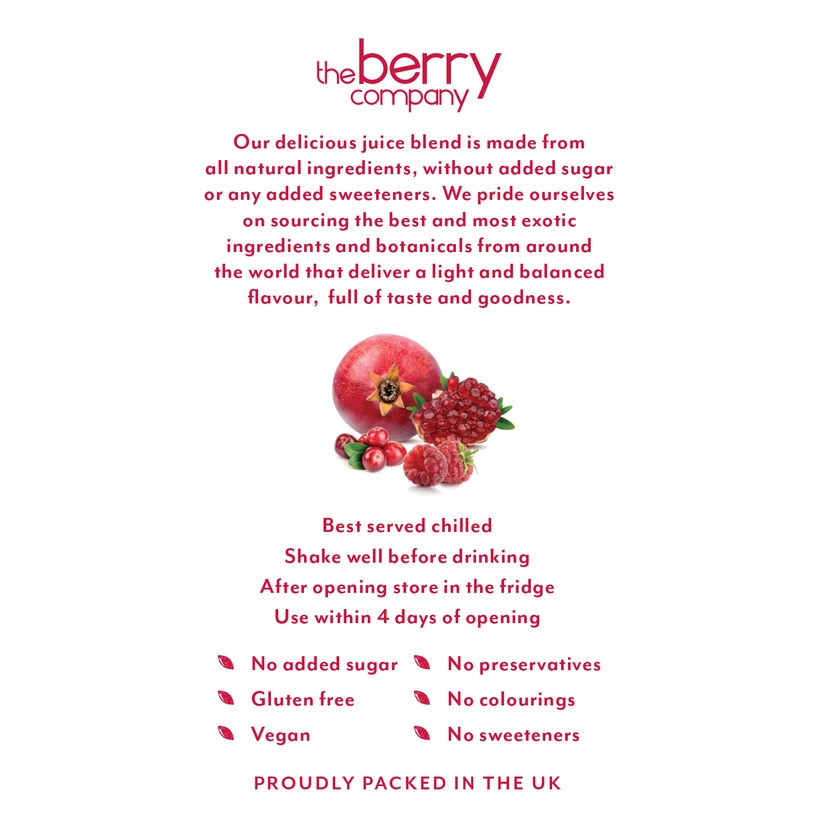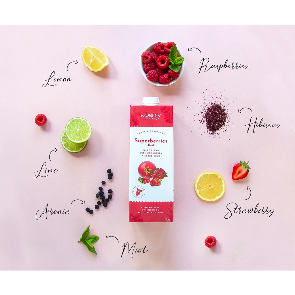 The Berry Company No Sugar Added Superberries Red Juice 1L (No Sugar Added, Gluten Free, Vegan)