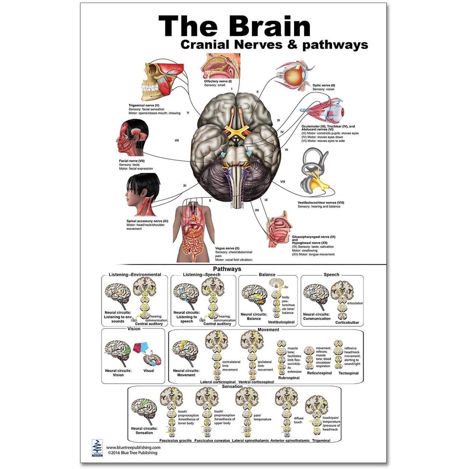 The Brain Poster Waterproof Cranial Nerves & Pathways