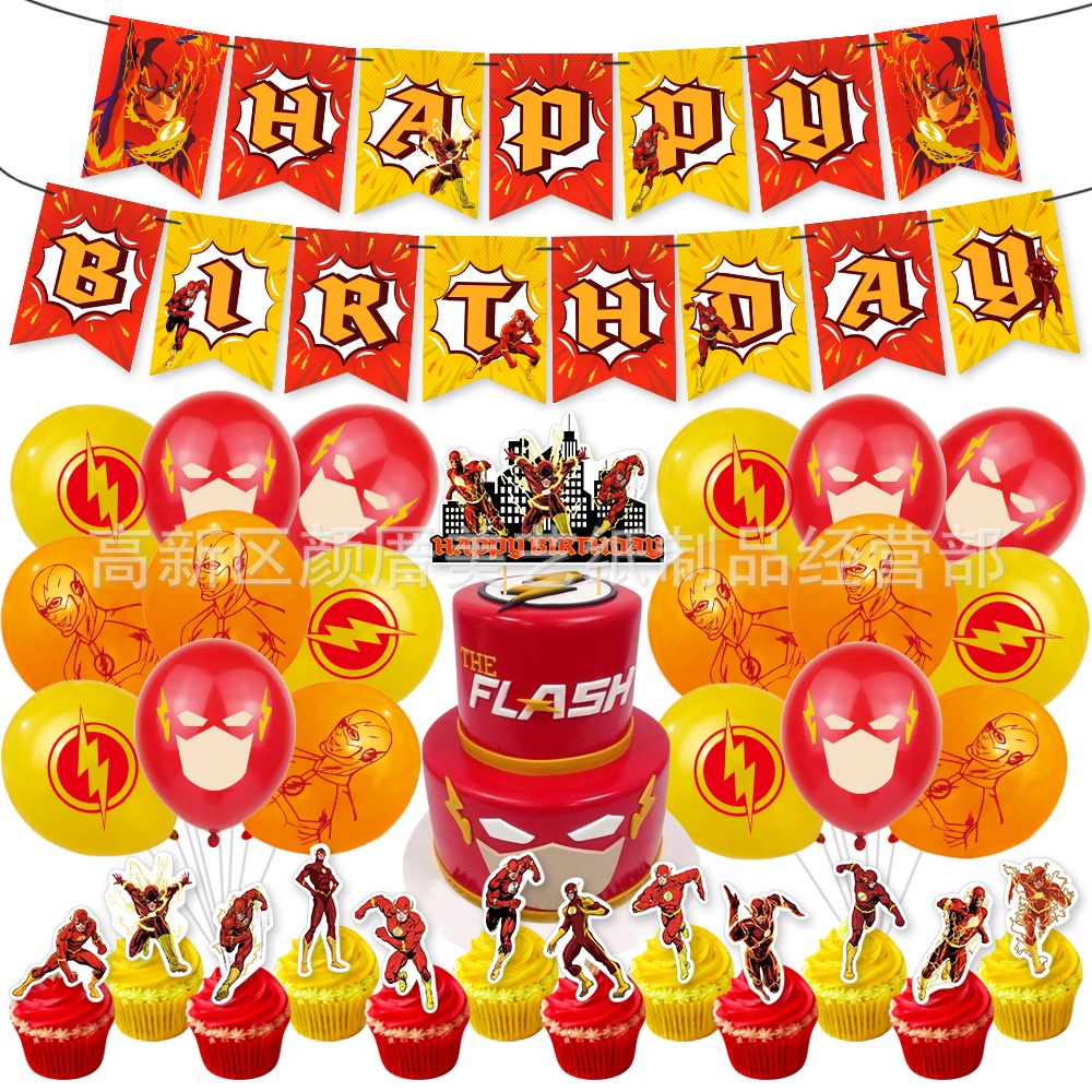 The Flash Superhero Theme Party Decoration Set Banner Cake Topper Balloon Invitation Cards Kids Baby Birthday Present Party Need celebrate