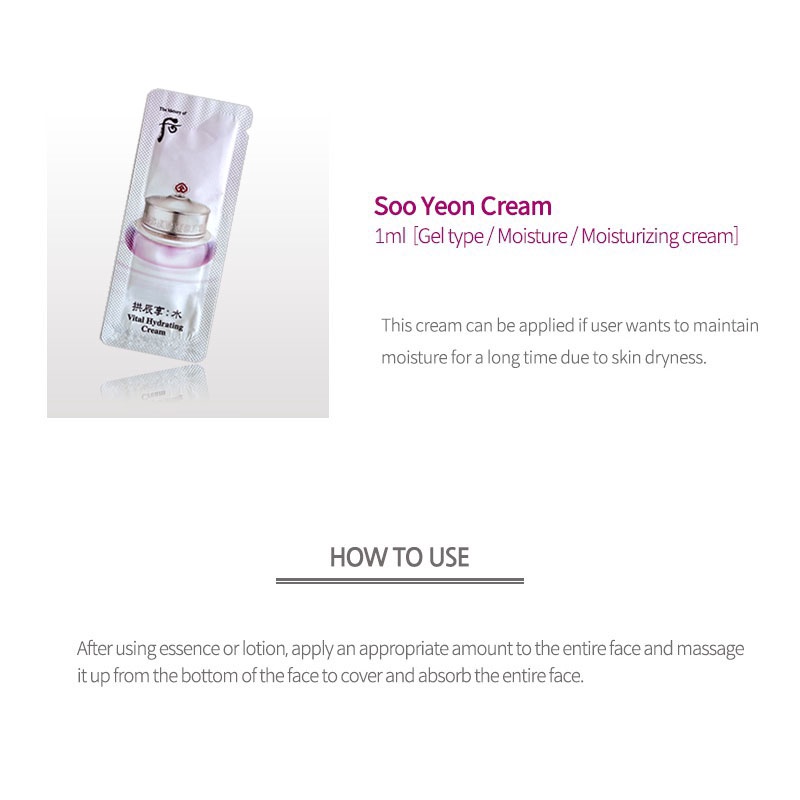 The History of Whoo Soo Yeon Cream 1ml x 10pcs / 1ml X 60pcsGel type / Moisture/moist skin/Moisturizing cream/ Lee Young-Ae Cream