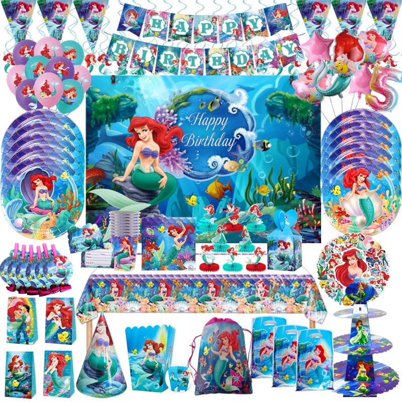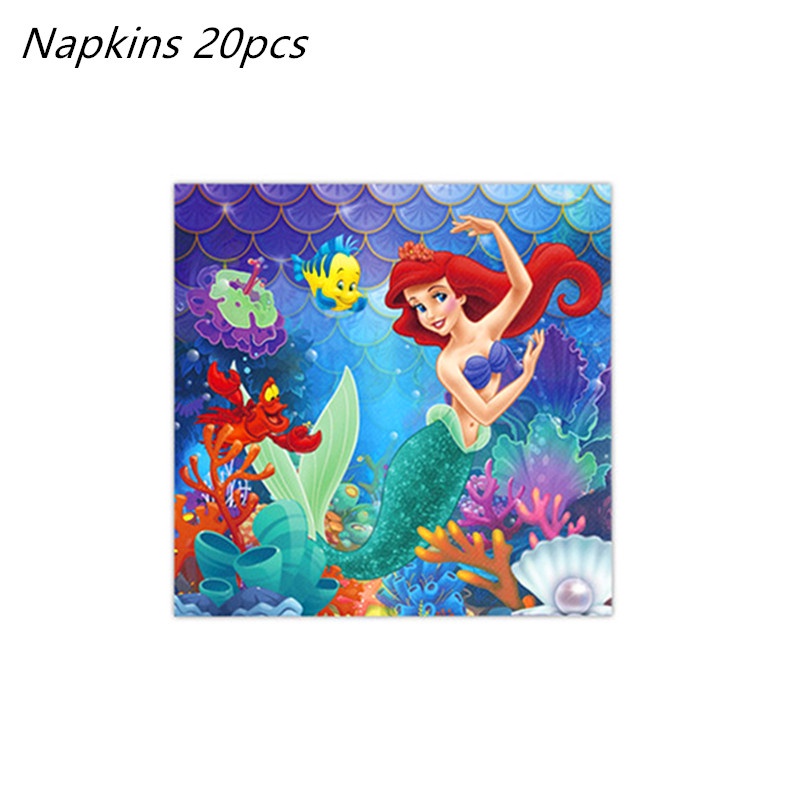 The Little Mermaid Princess Ariel Tableware Set Birthday Party Decorations Paper Plate Napkin Cup Tablecloth Party Supplies