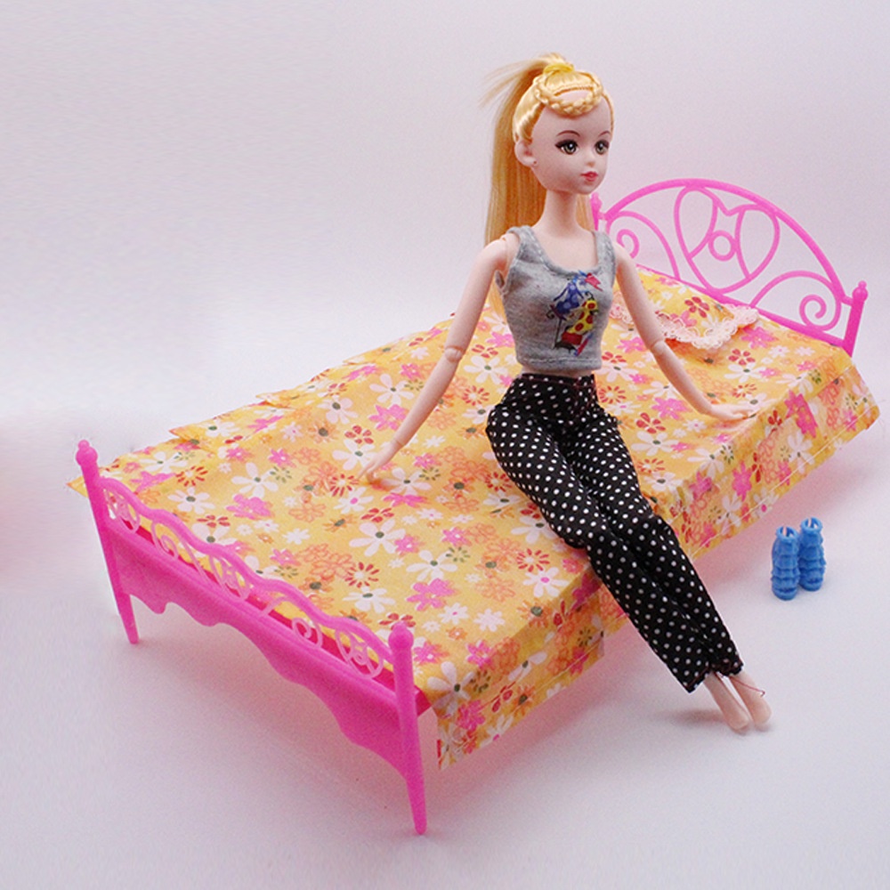 The New Fashion Floral Doll Big Bed, Girl's Toy Play House Nap Bed, 30cm Doll Bed
