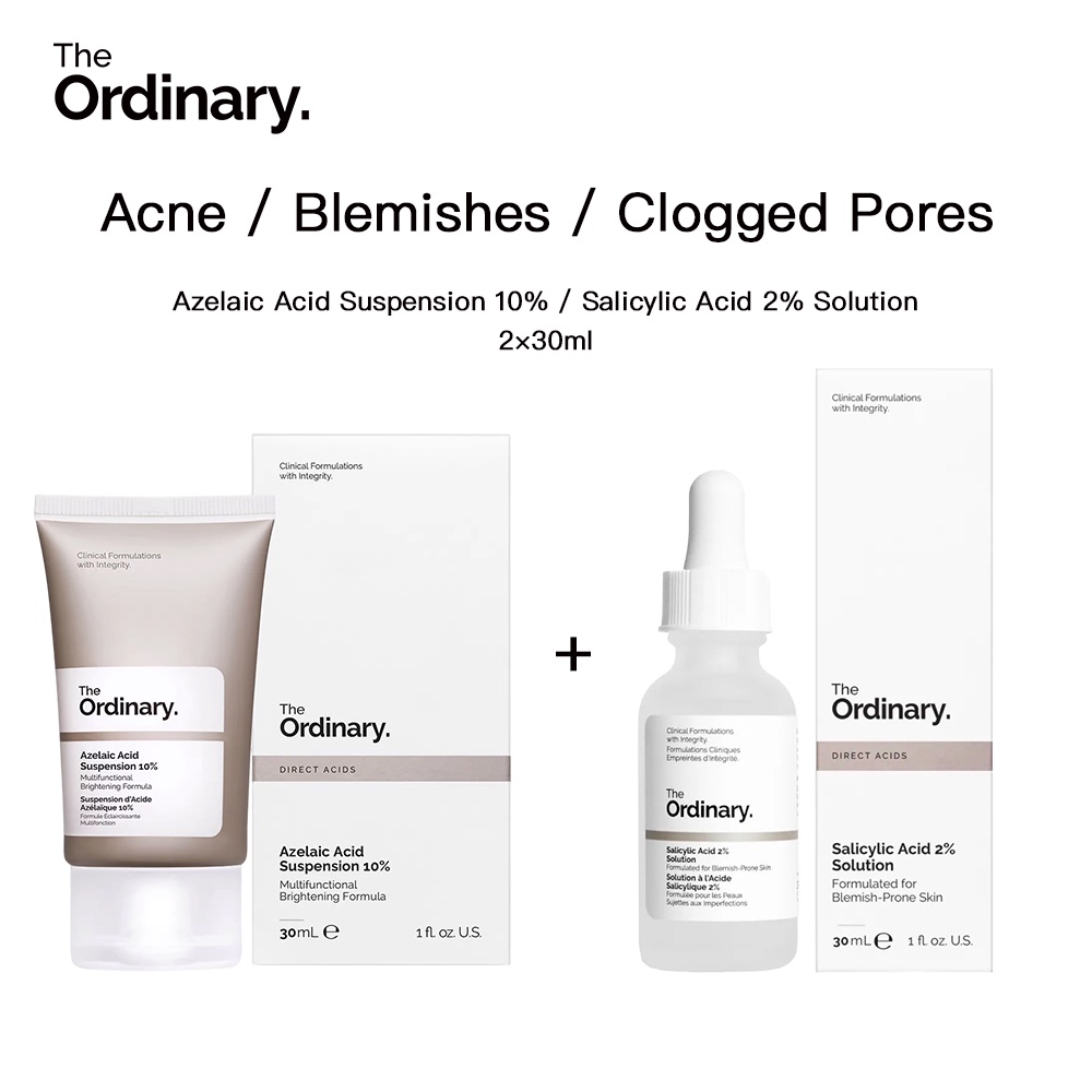 The Ordinary Acne Marks Blackheads Serum - Salicylic Acid 2% Solution BHA / Azelaic Acid Suspension 10% Acne Removal - 30ml