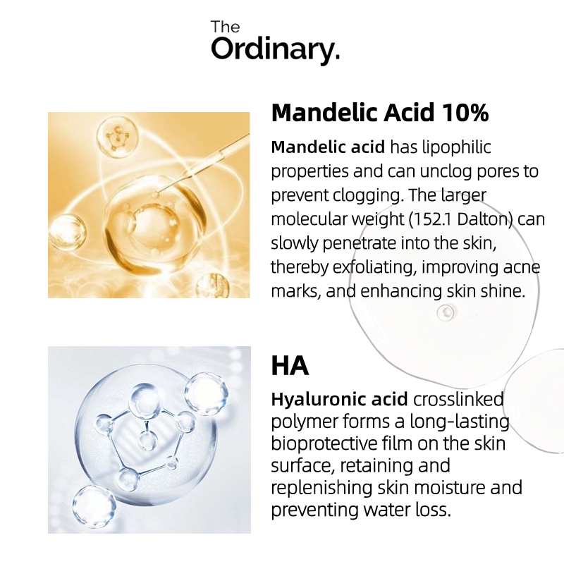 The Ordinary Mandelic Acid 10% + HA Peeling Lotion Exfoliating Scrub Pimple Acne Blackhead Remover 30ML