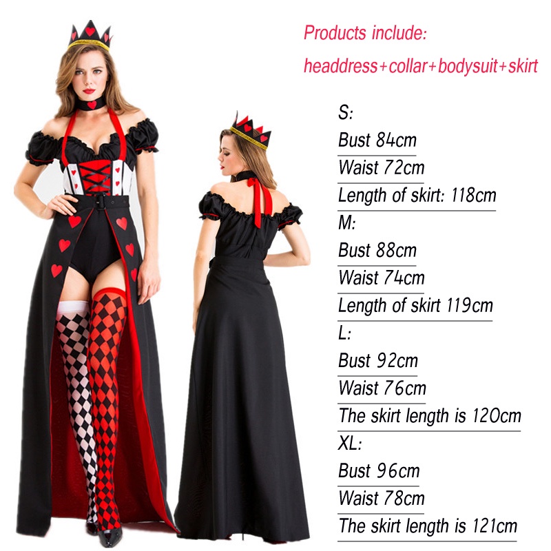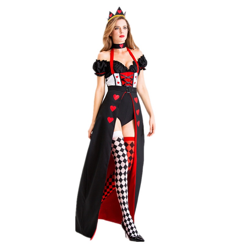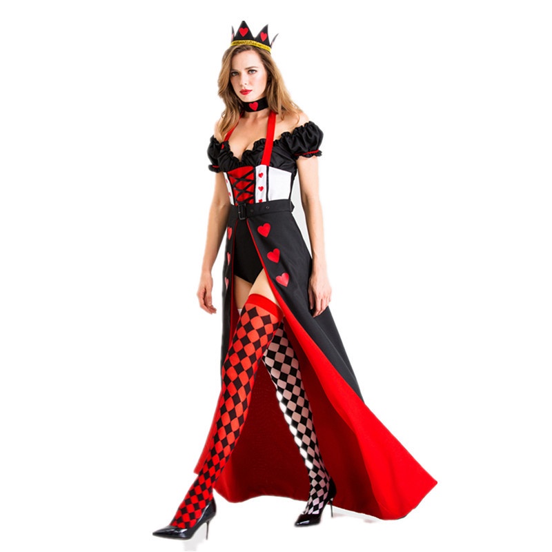 The Red Queen Cosplay Costume Party Dresses Halloween Red Heart Princess Poker Queen Dress
