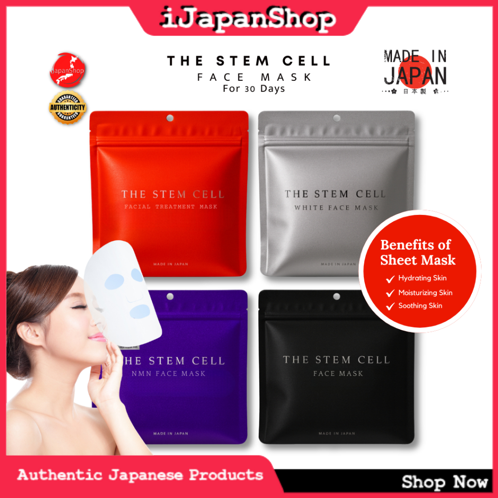 The Stem Cell Facial Mask 30 Sheets Whitening Moisturizing Anti-Aging Face Mask Made in Japan