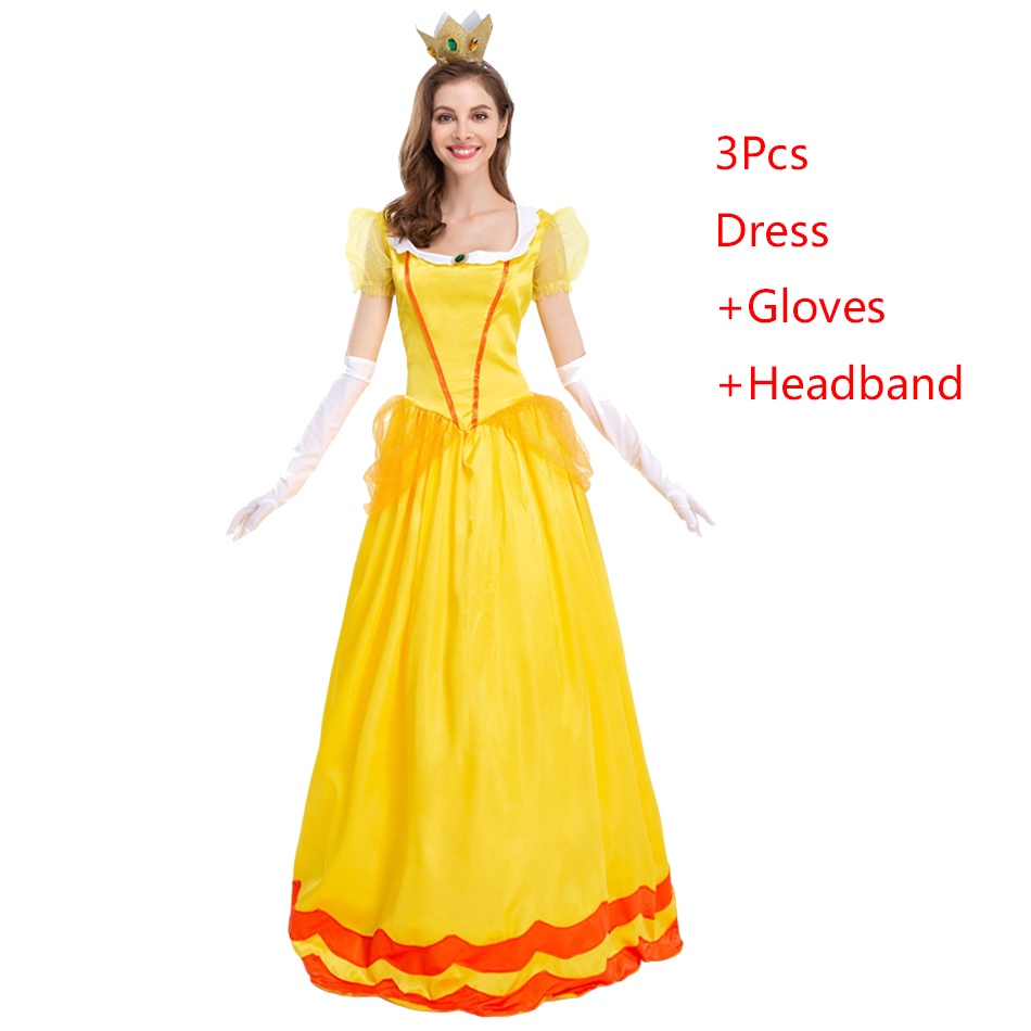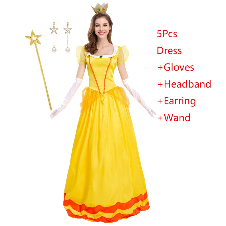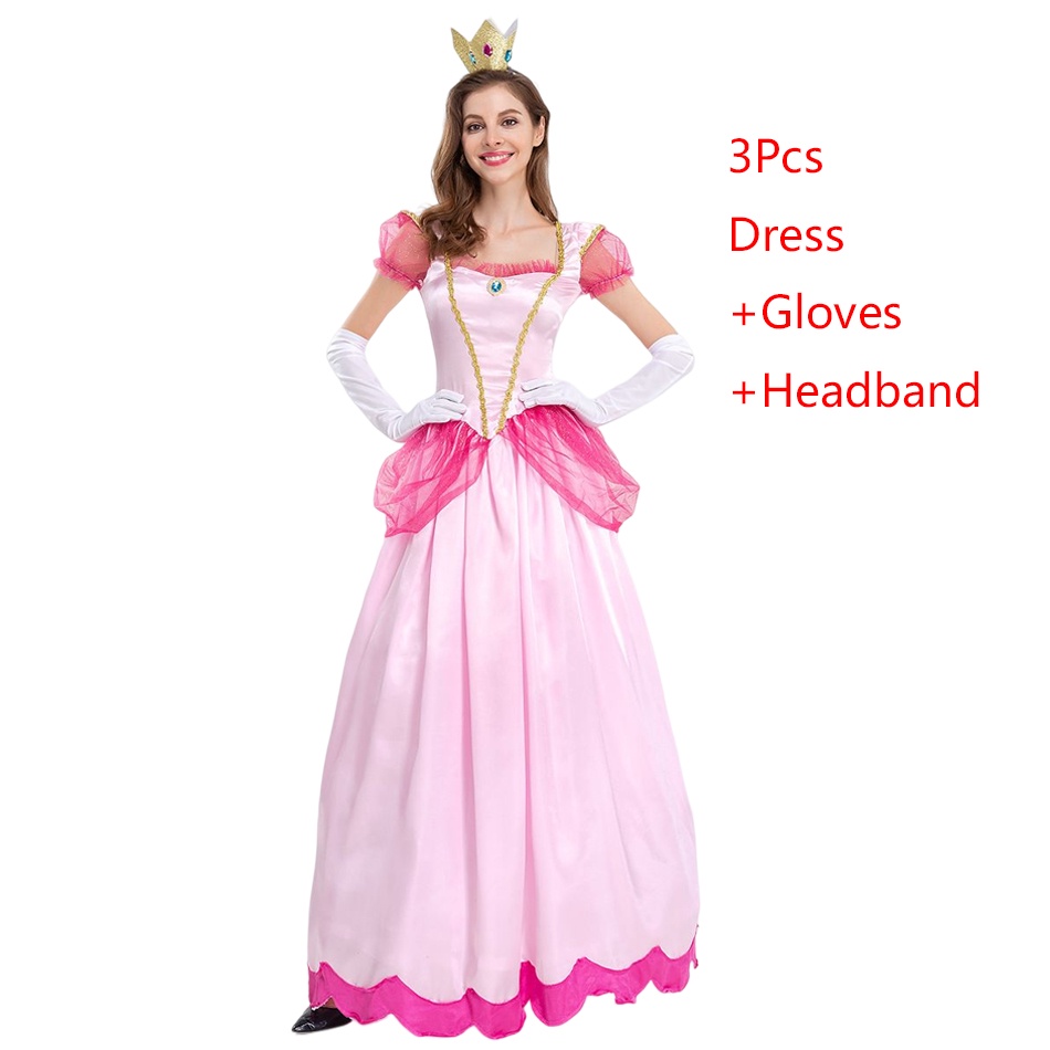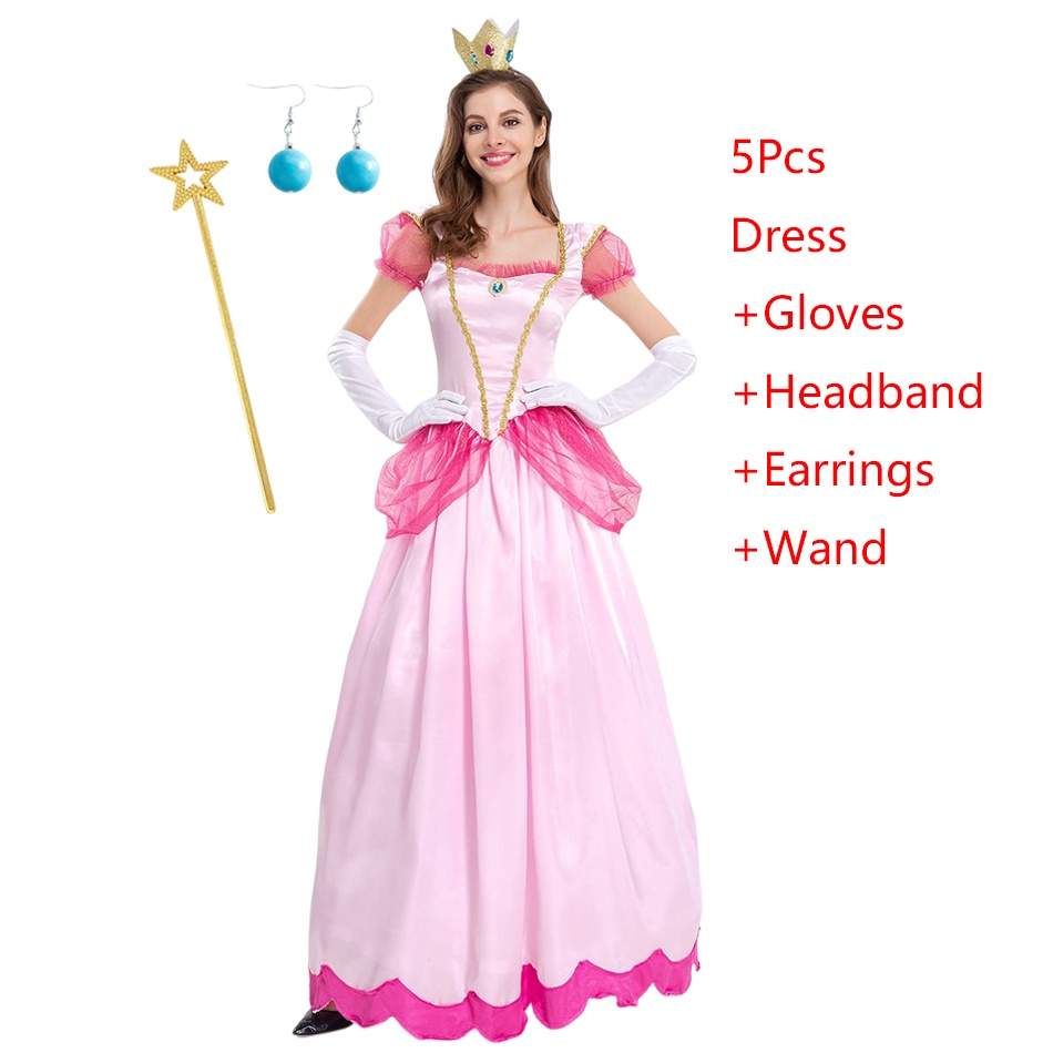 The Super Mario Bros Princess Peach Adult Cosplay Costume Girls Fancy Dress Mother Daugter Party Prom Halloween Clothing For Women Dress Up Outfits