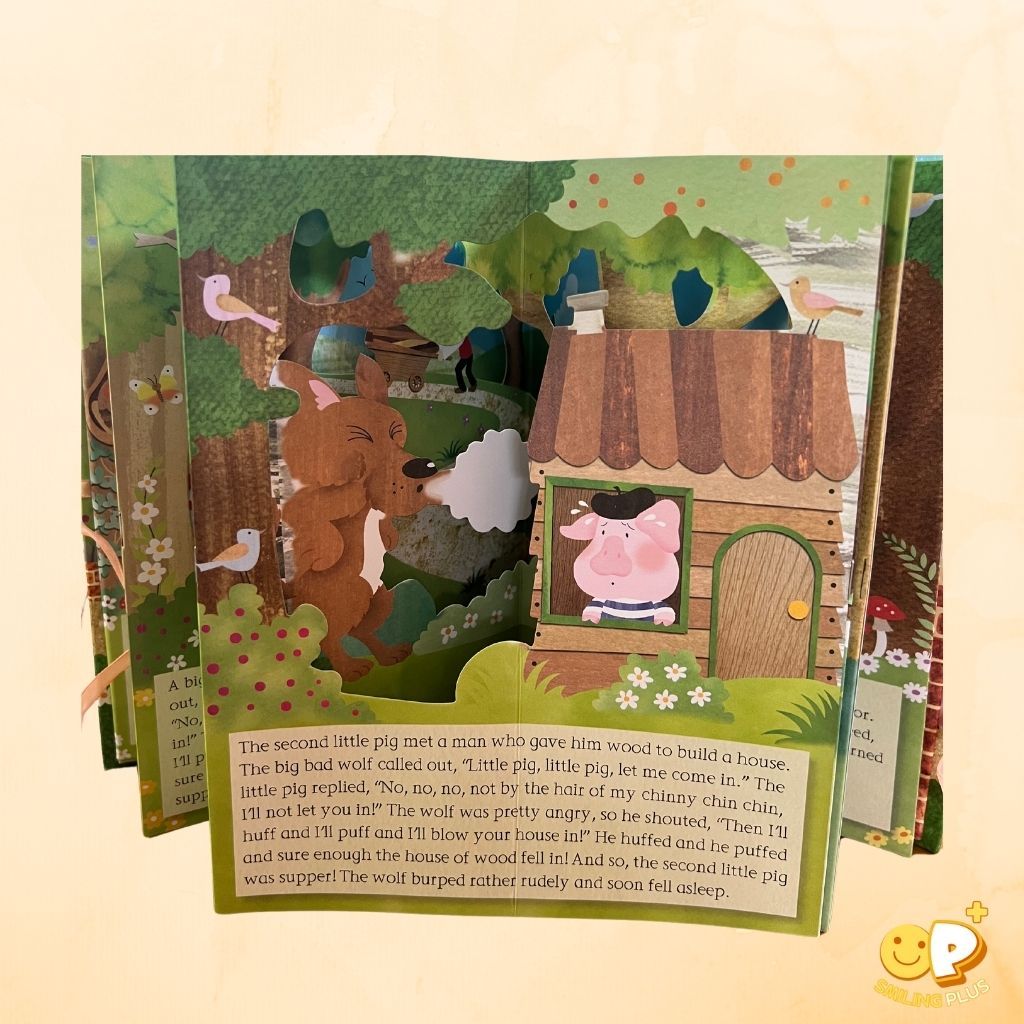 The Three Little Pigs pop up scenes. Pig Story Book With A Stand-up Scene