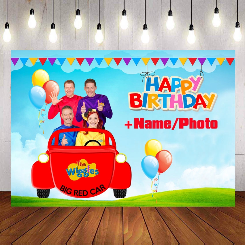 The Wiggles Backdrops Cartoon For Children Birthday Party Photography Big Red Car Blue Sky Backgrounds Photocall For Children Birthday Party Decor Custom Name Photo
