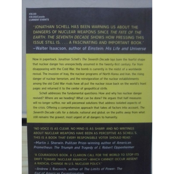 The seventh decade. the new shape of nuclear danger by Jonathan schell (PReLoved/Used)