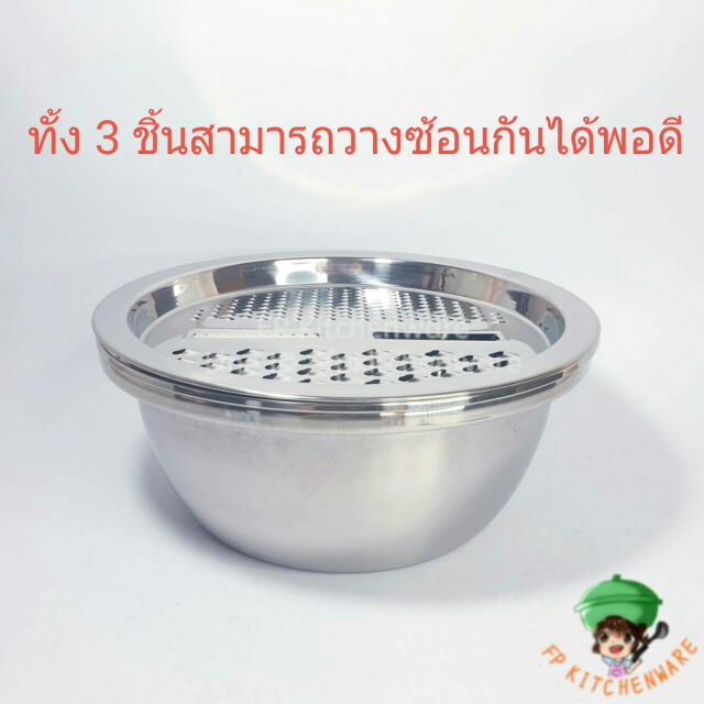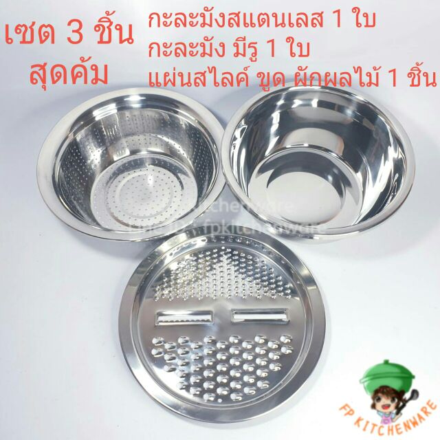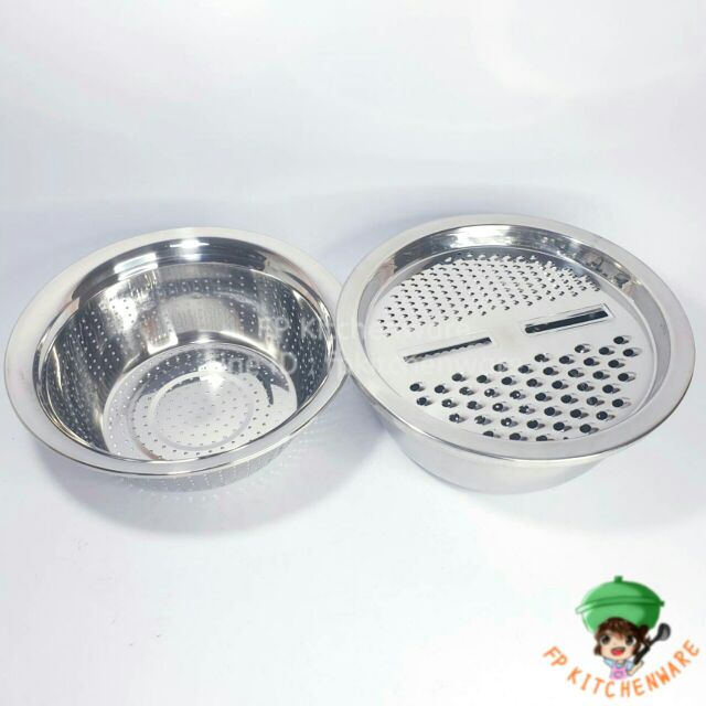 There Are 2 Sizes 3-Piece Set Stainless Steel Basin Perforated Scraper Slices Vegetables Fruits Basins Vegetable Washing The Has Holes.