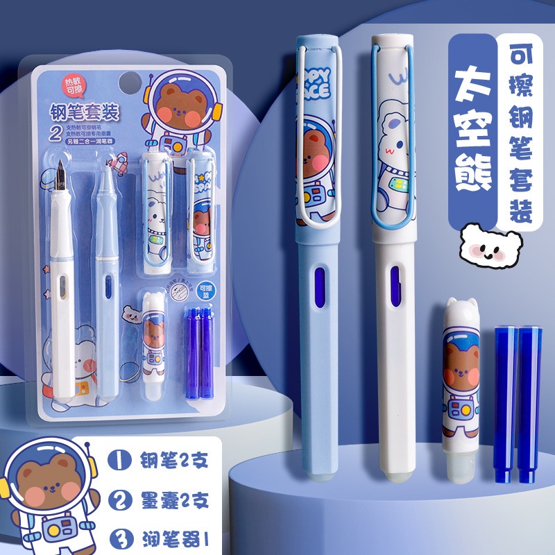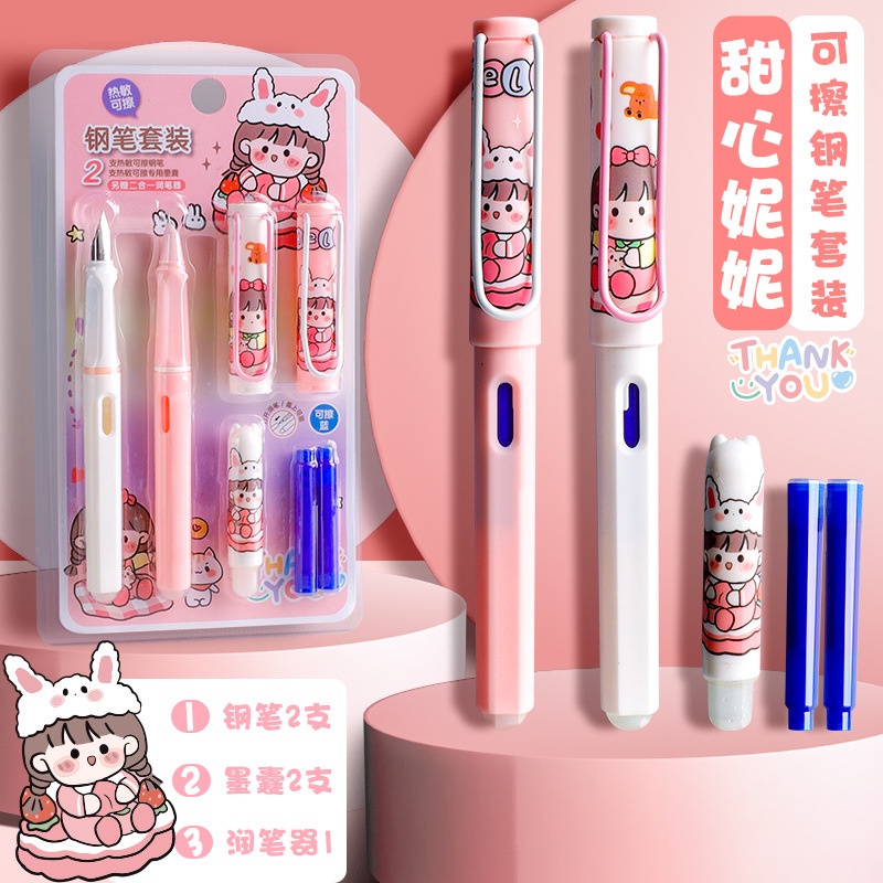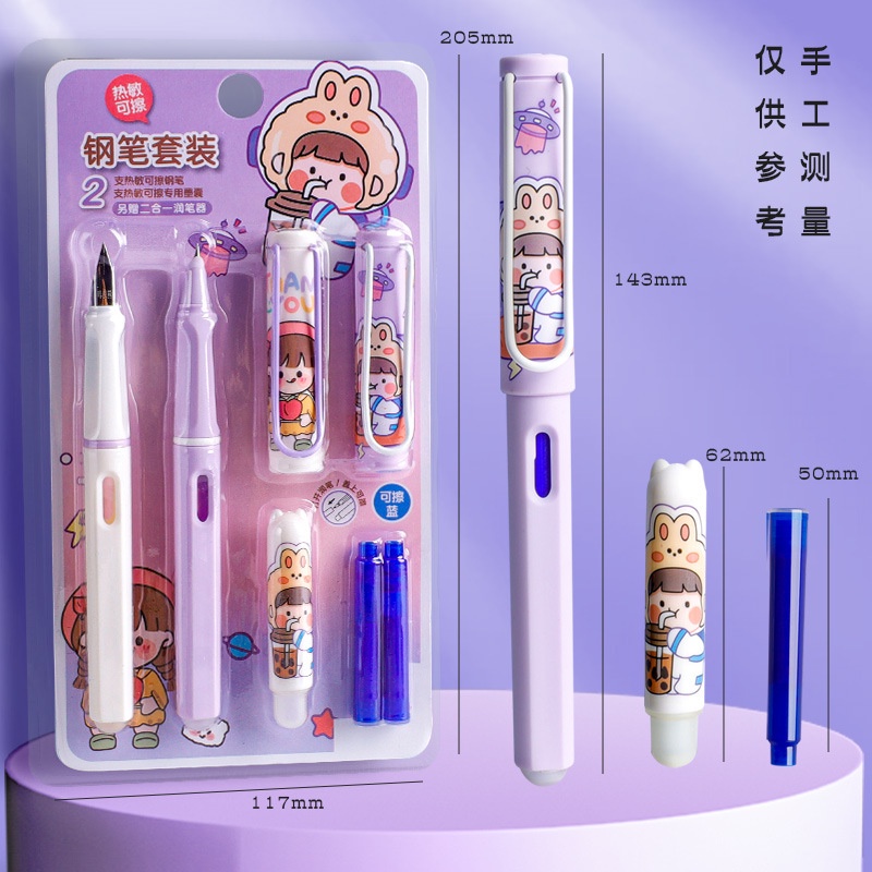 Thermal Erasable Fountain Pen Replacement Ink Sac Friction Calligraphy Practice Set Cute Cartoon Girl Style Student