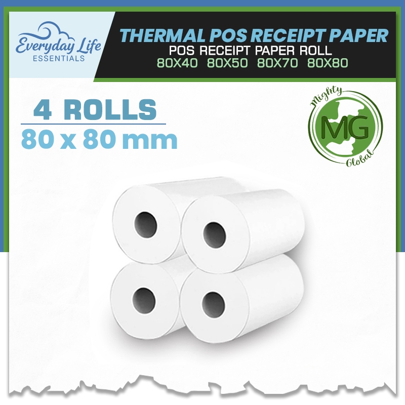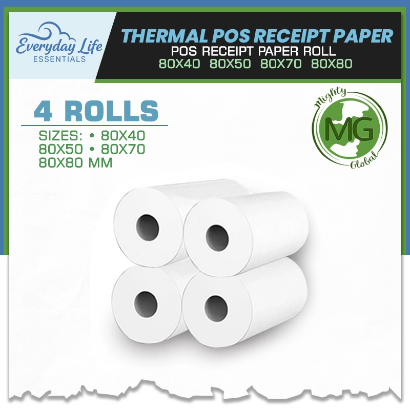 Thermal POS Receipt Paper 4 Rolls ( 80x40 , 80x50 , 80x70 , 80x80 ) by MIGHTY GLOBAL