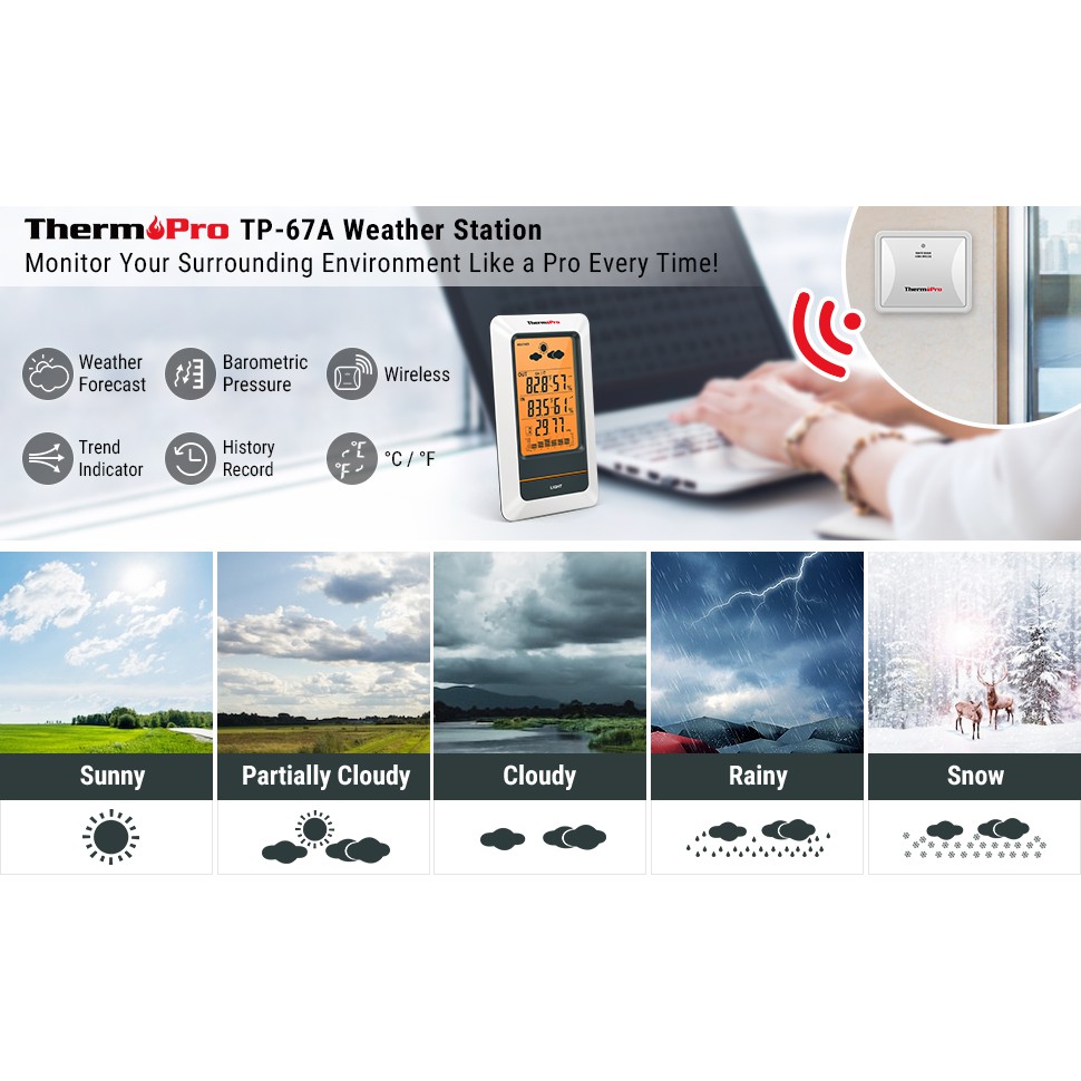 Thermopro TP67B TP-67B Waterproof Weather Station Wireless Indoor Outdoor Thermometer