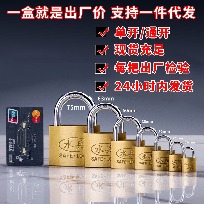 Thick Iron Padlock with 3 Iron keys Imitation Copper Lock Keys household padlock 20/25/32/38/50/63mm