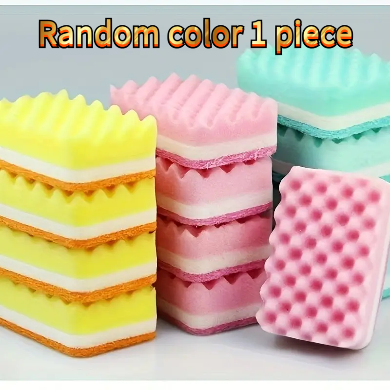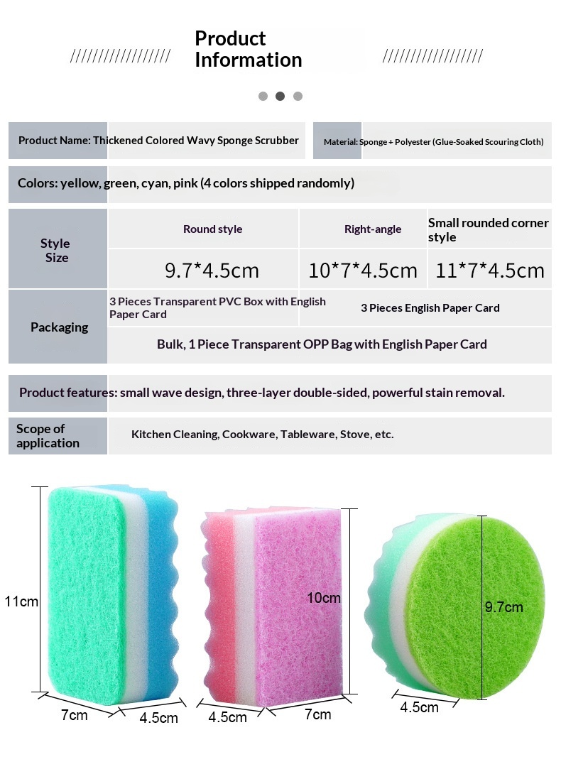 Thick Light Color Small Wave Sponge Dishwashing Sponge Scouring Pad Kitchen Housework Cleaning Dishwashing Cloth Dish Cloth