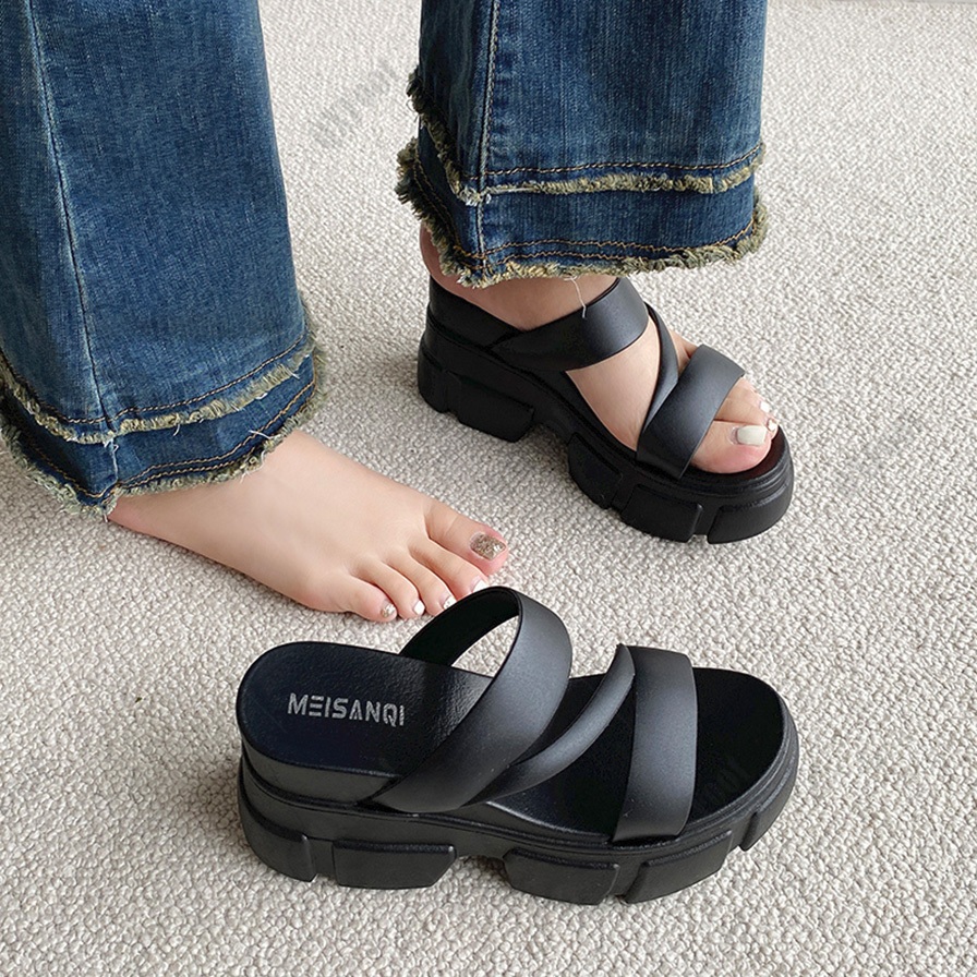Thick Soled Sandals for Women's Comfortable Sponge Cake Sole Slippers Casual Beach Shoes (Add+1size)