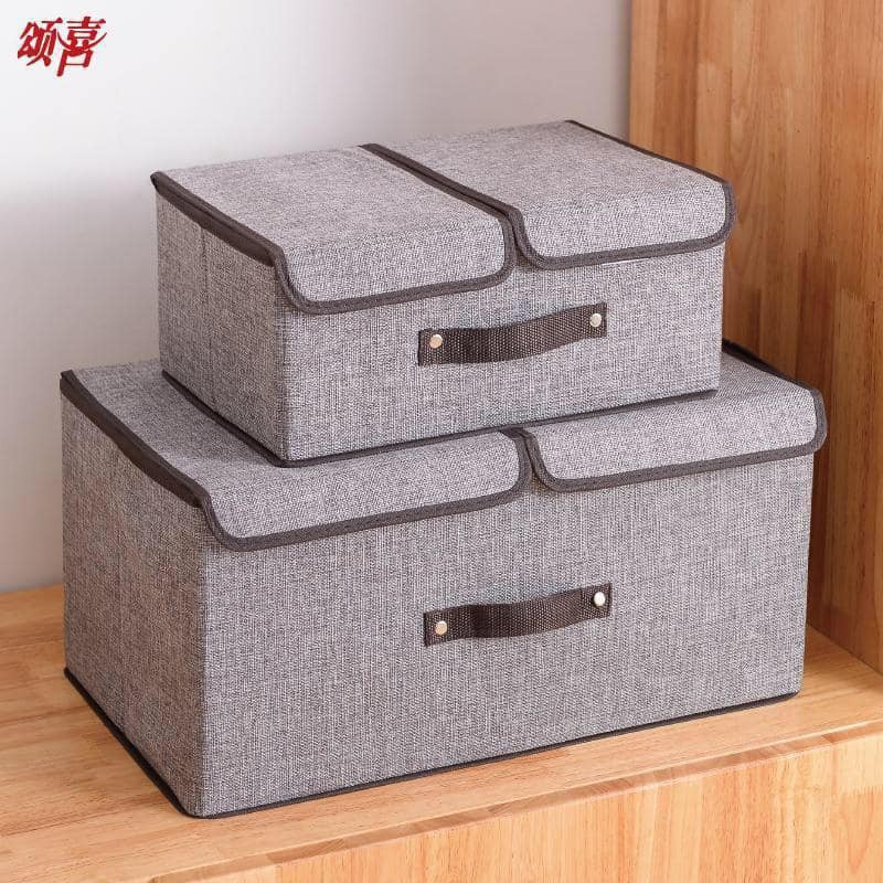 Thicken 2 Grid Storage Box Finishing Box Fabric Folding Double Cover Large Storage Box