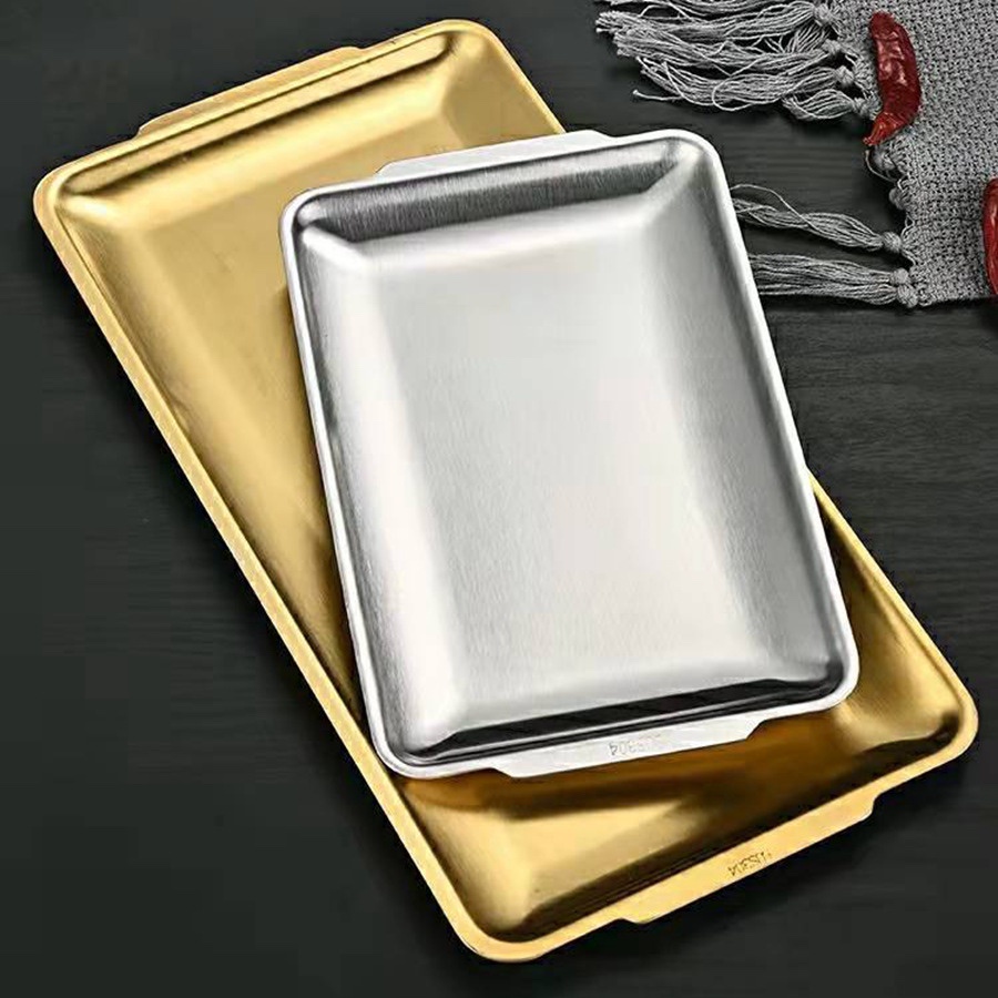 Thicken Stainless Steel Food Storage Shallow Trays BBQ Sushi Flat Dish Bread Pastry Baking Pan Kitch