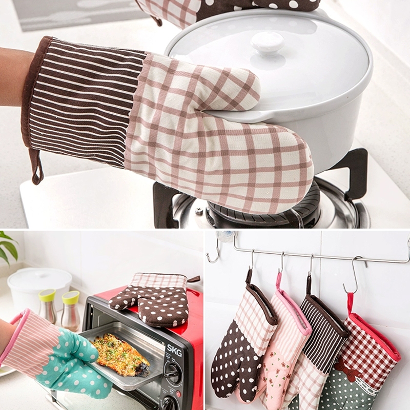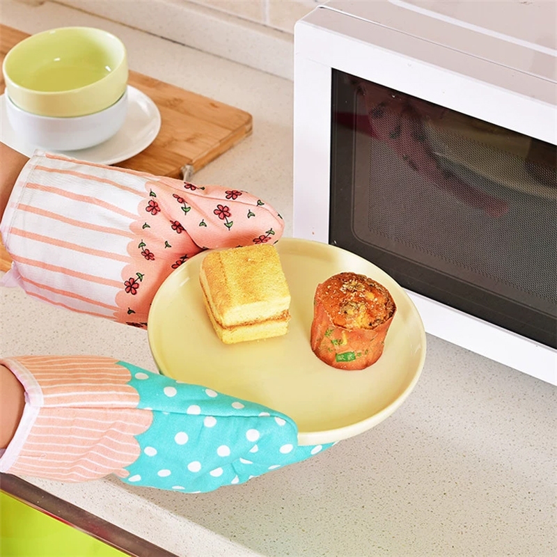 Thickened Cotton Heat-Resistant Oven Gloves | Kitchen Baking BBQ Mitts | Non-Slip & Comfortable