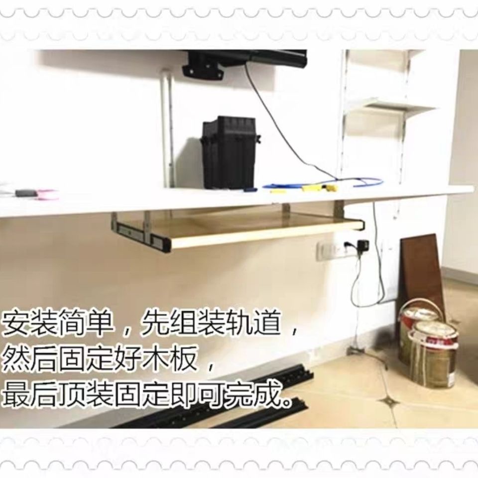 Thickened Keyboard Slide Rail Lifting Keyboard Rail Computer Desk Keyboard Tray Rail Tray Bracket Keyboard Two Segments Track/Drawer Roller Pulley Slide Slider Left Right Track