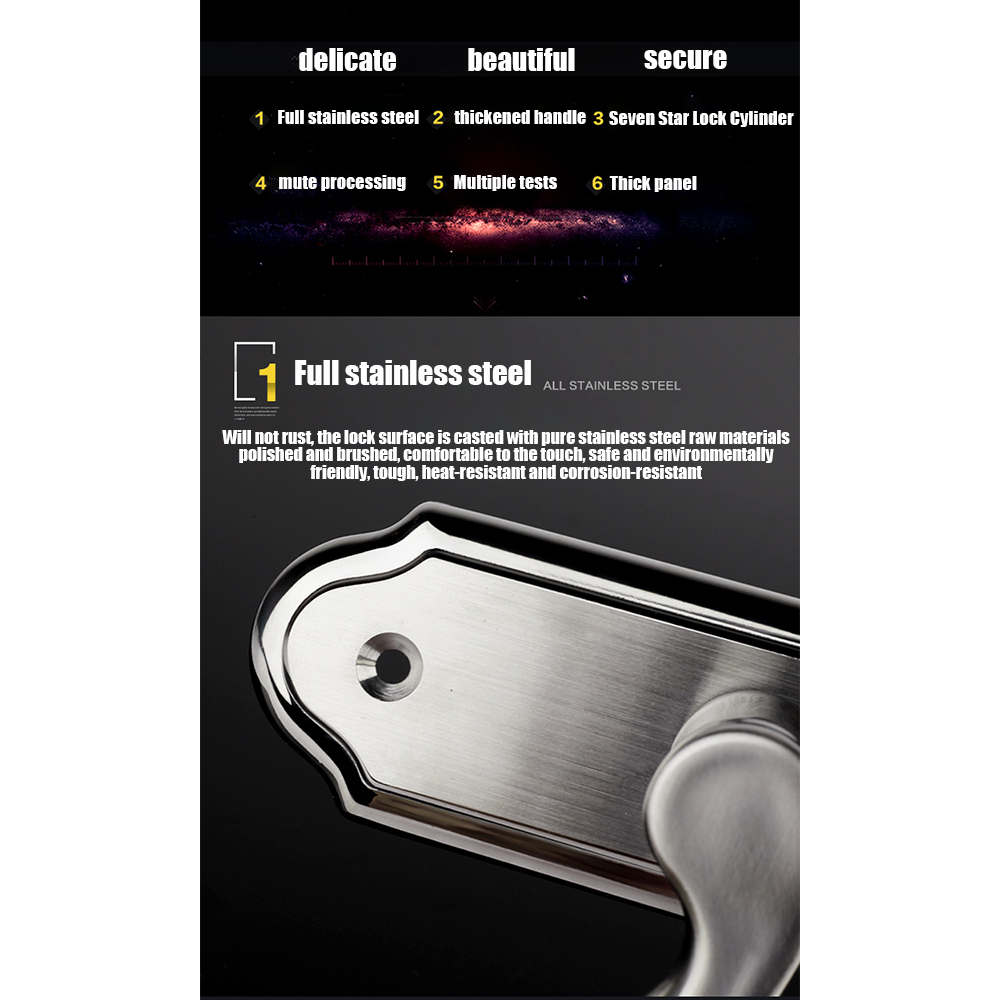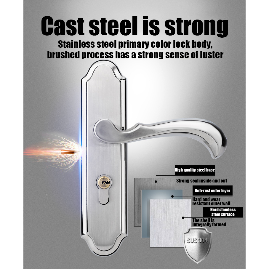 Thickening Stainless Steel Material Room Door Lock Contains 3 Keys Door Knob Main Door Heavy Duty