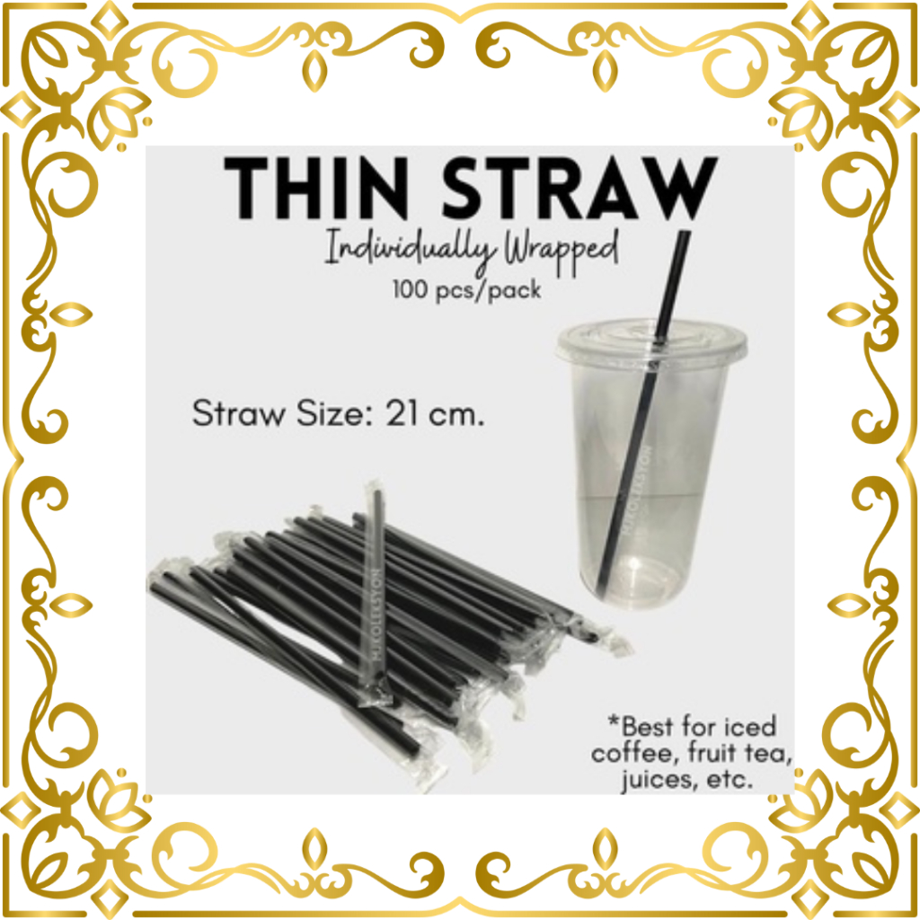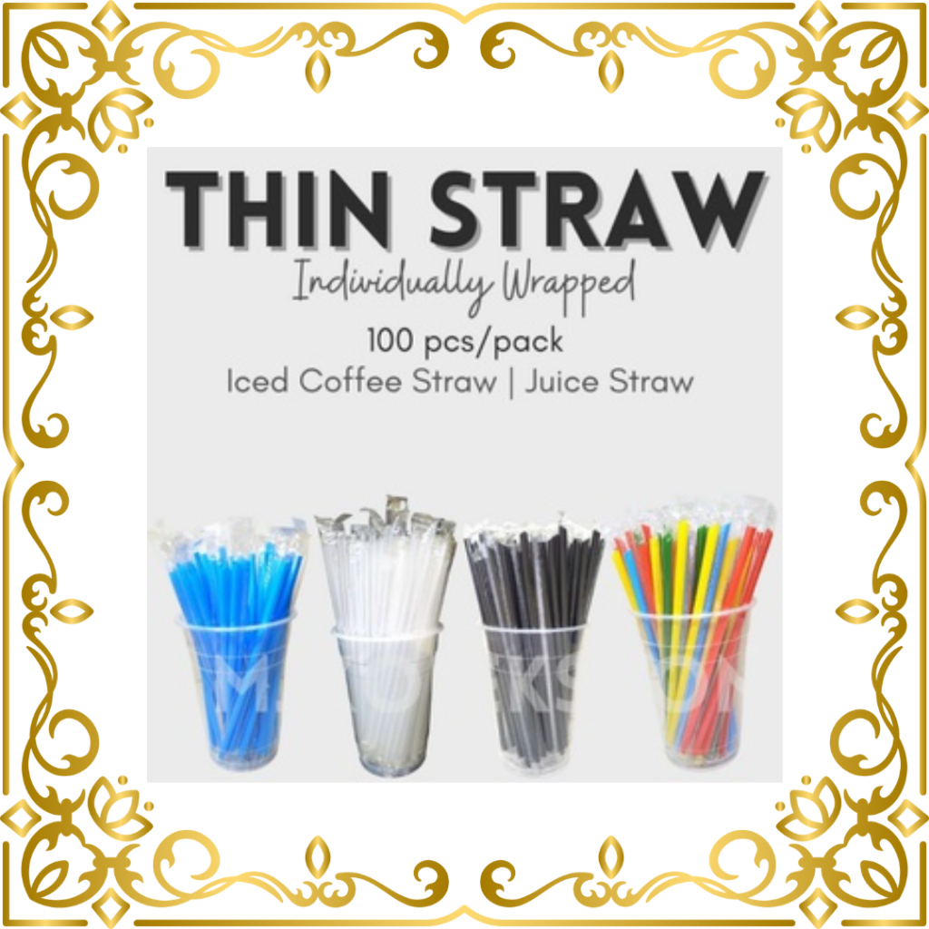Thin Straw Iced Coffee Straw 100pcs Individually Wrapped