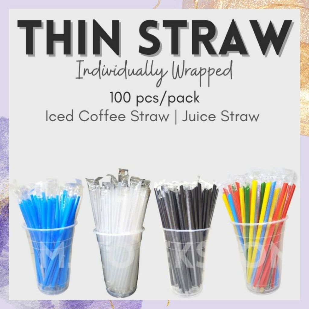 Thin Straw Iced Coffee Straw 100pcs Individually Wrapped