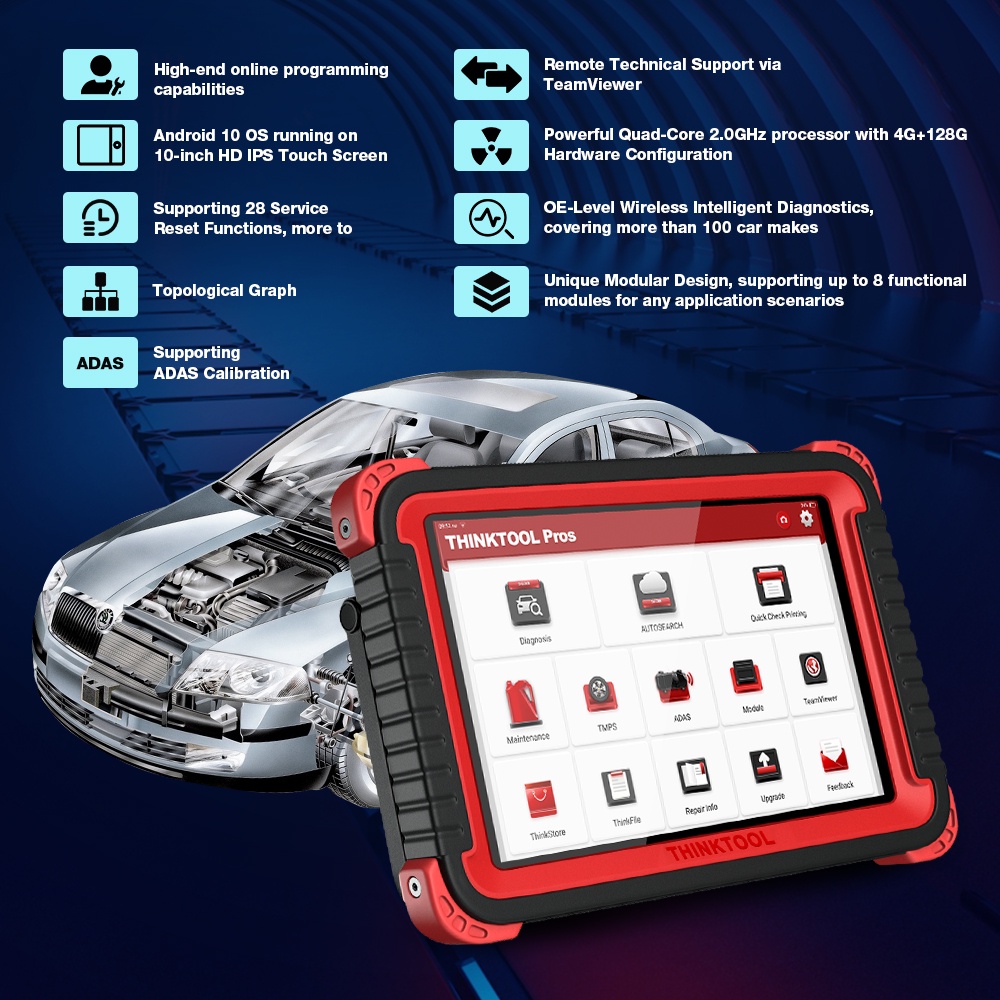 Thinkcar Thinktool Pros 10 Inch Full Systems Bi-Directional Auto Diagnostic Scan Tool ADAS 2 Years Free Update 28 Reset