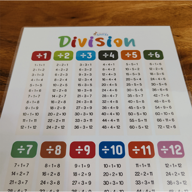 Thousand Smiles Division Table Chart for Kids Mathematics Laminated A4 Size