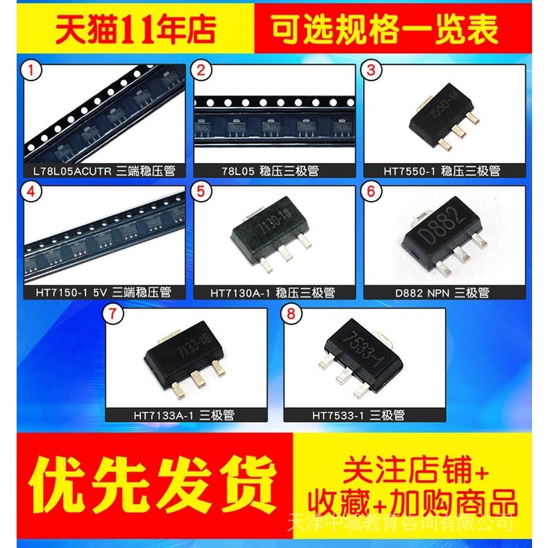 Three-End Voltage Regulator Tube 78L05 78L05/HT7550/7150/7130A D882 Triode SOT-89 Y8GS