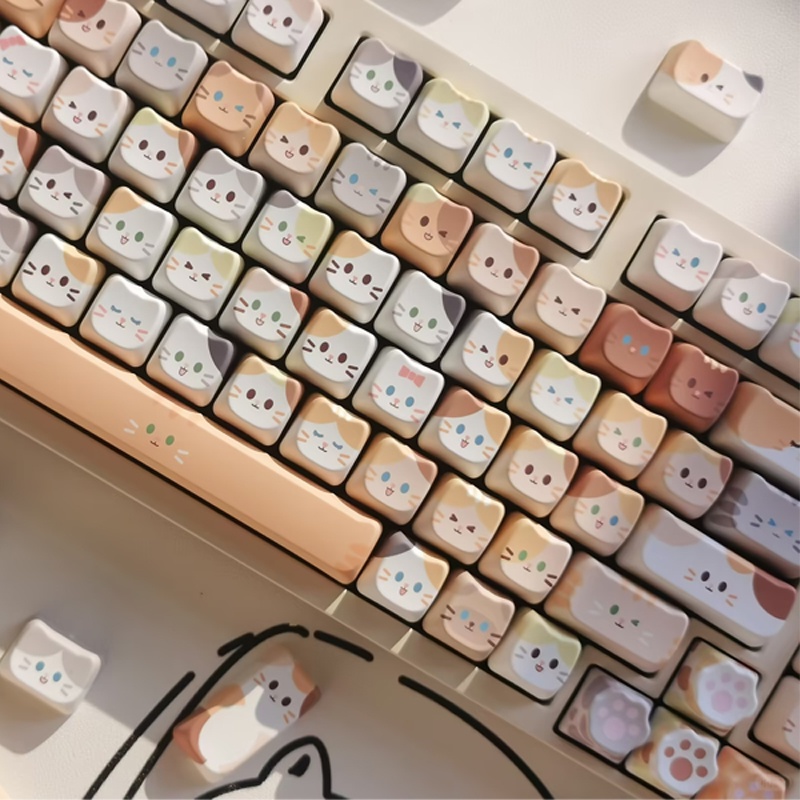 Three Felinae Cat Head Theme Keycaps MAO Profile Five Sides Sublimation Side Engraved Letter Mechanical Keyboard Keycaps For Cross Switches Siamese Cat Cat Paw Huskies Cute Keycaps