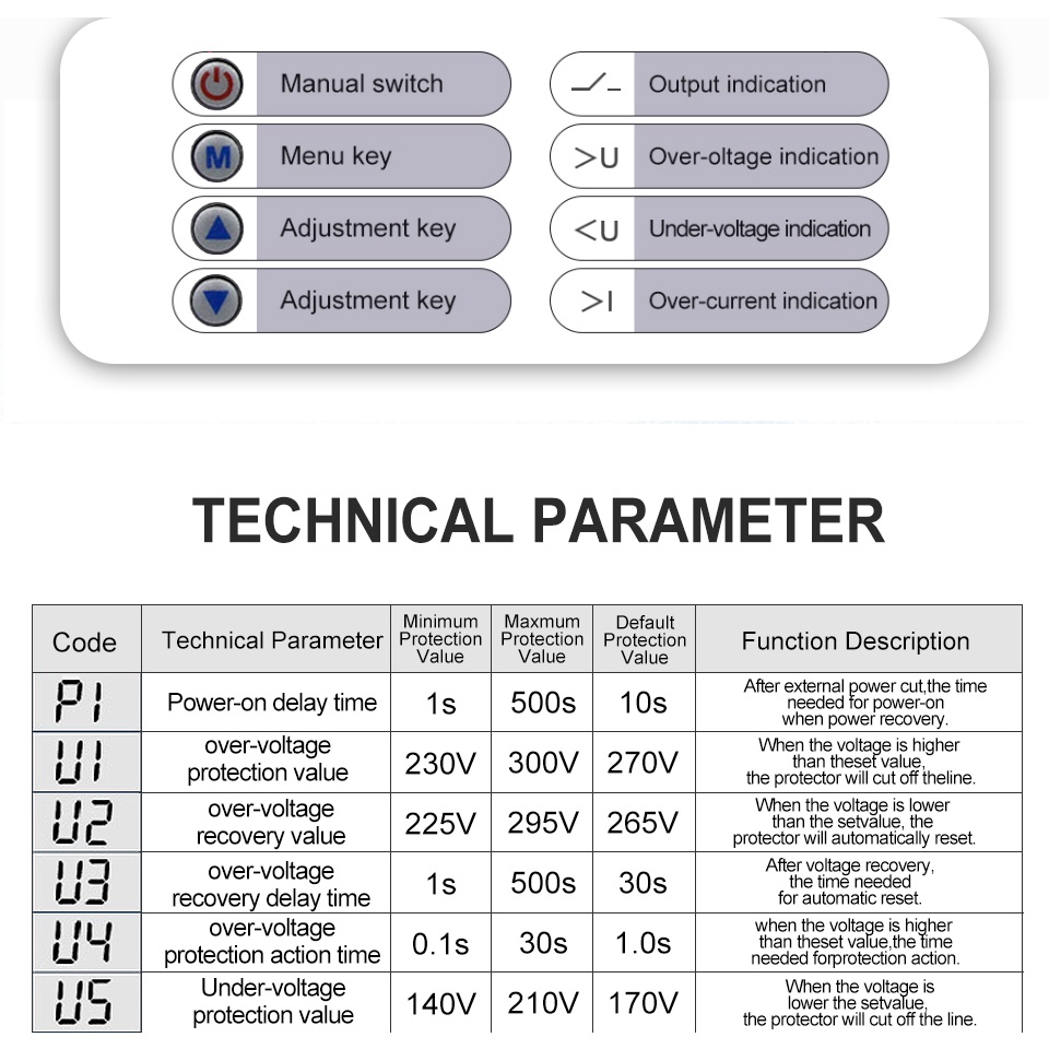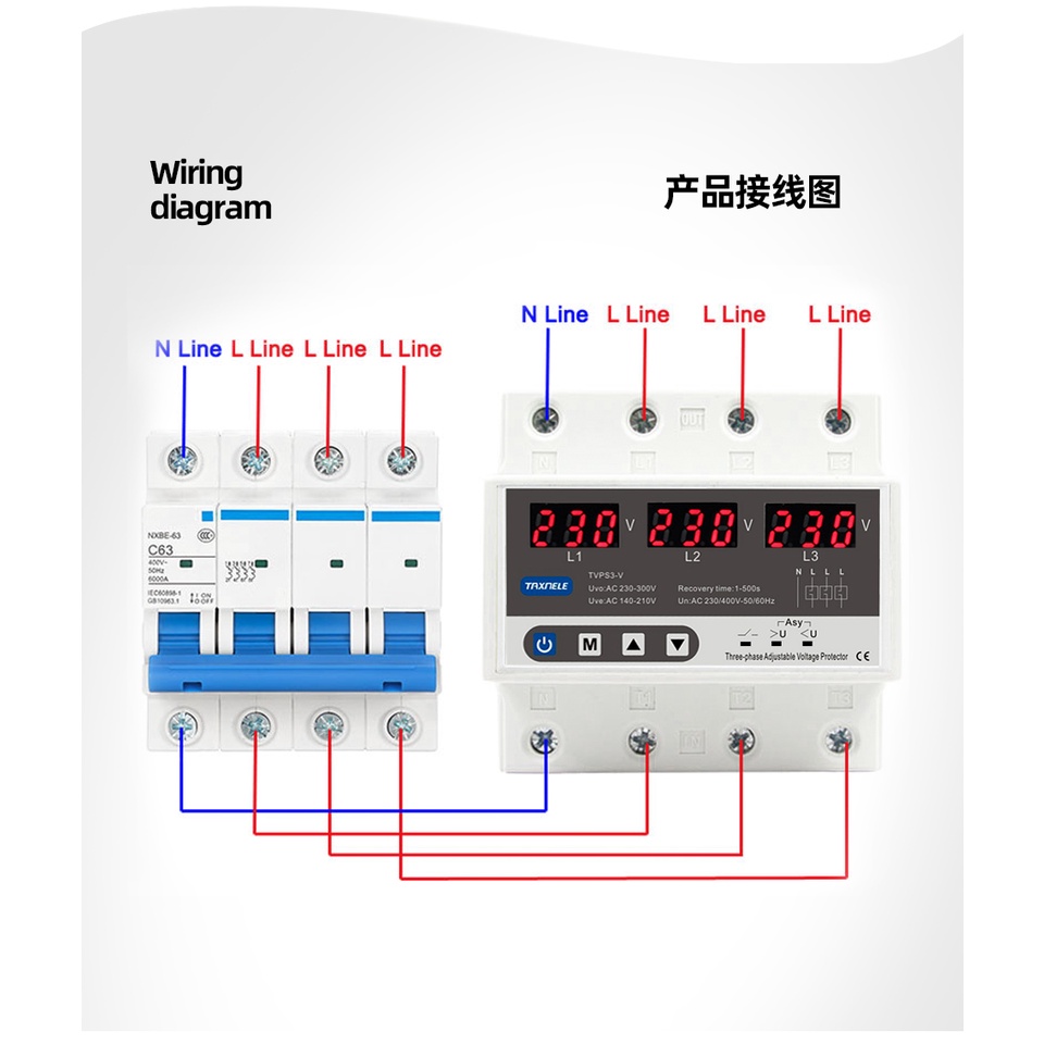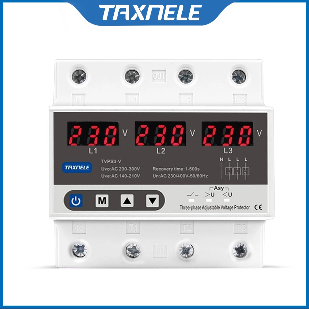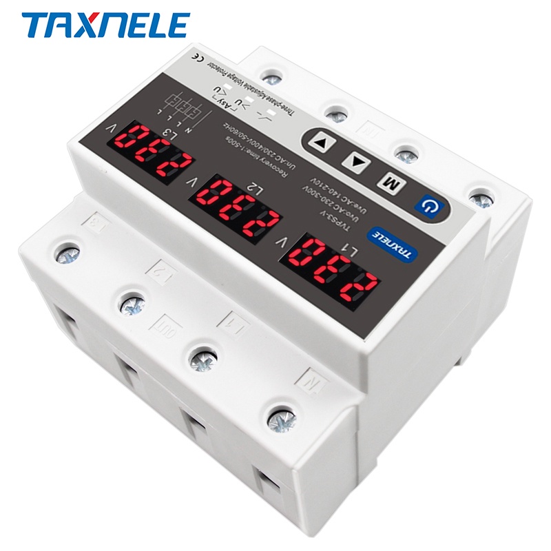 Three Phase Adjustable Over and Under Voltage Protector 3 Phase Automatic Recovery Protective Device Reset 63A 380V