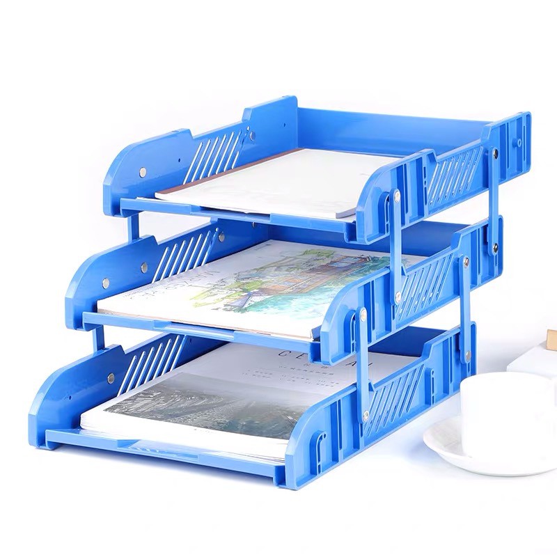 Three-layer horizontal file tray, multi-layer file rack plastic file storage rack for office supplie