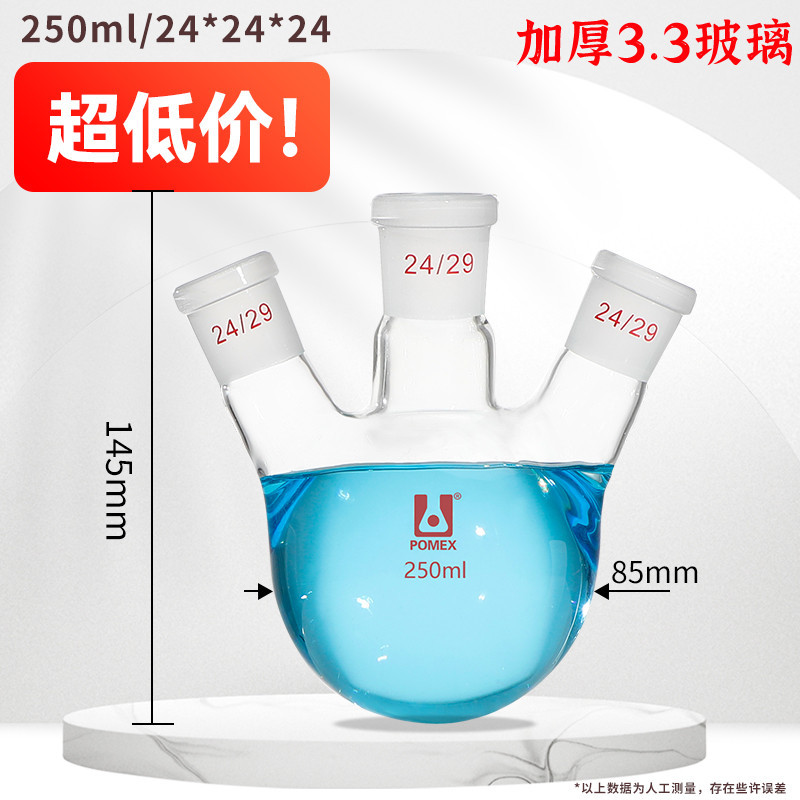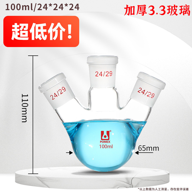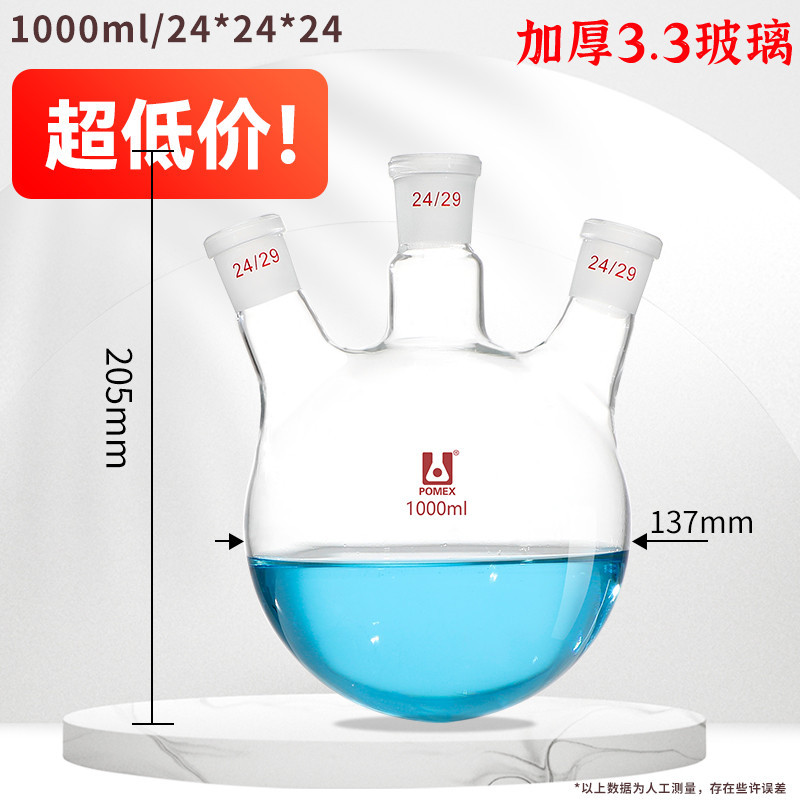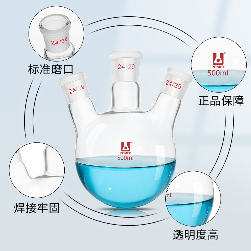 Three-mouth Flask Oblique Three-Neck Round Bottom High Temperature Resistant Distilled Flask Straight-Mouth Reaction Flask 100/250/500/1000/