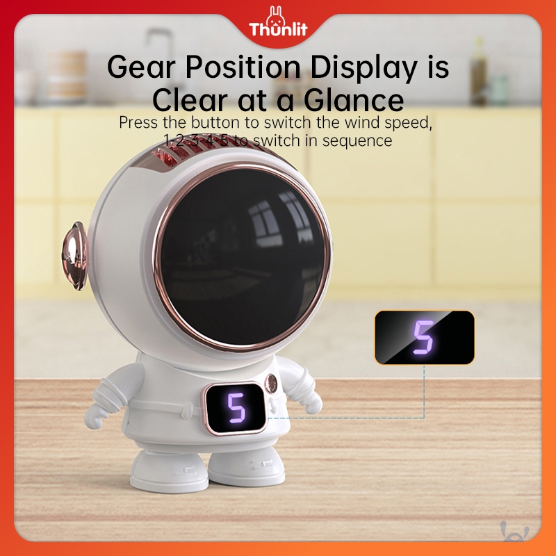 Thunlit Portable Astronaut Fan Leafless Halter Neck Fan Mini USB Desktop Office Outdoor Handheld Pocket Fan