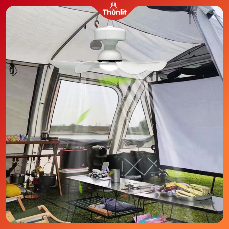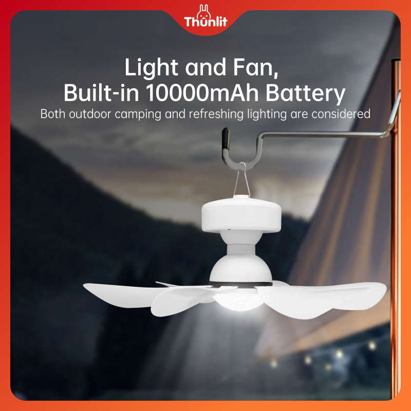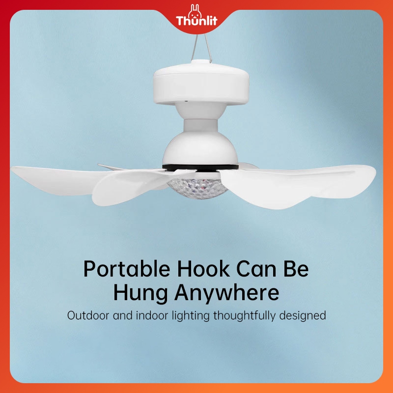 Thunlit Solar Outdoor Ceiling Fan with Light 10000mAh Remote Control Portable Ceiling Fan for Camping Home Solar Powered Detachable Fan Light