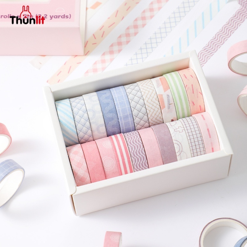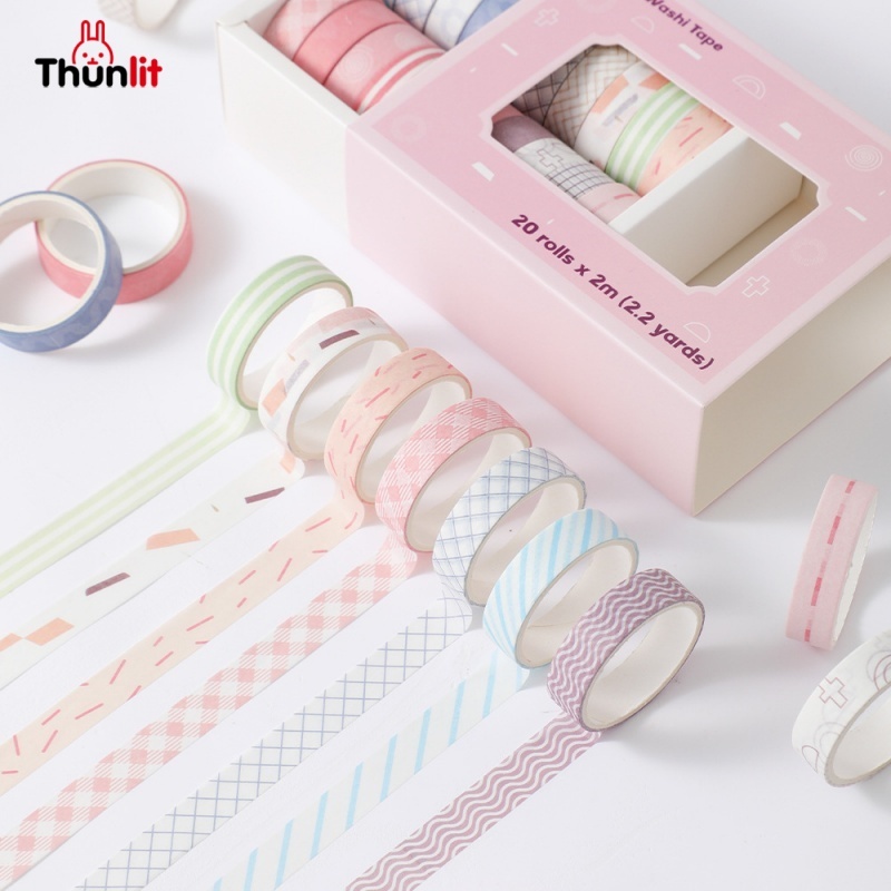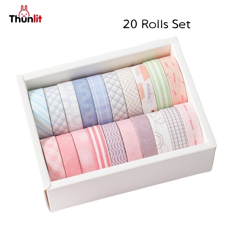 Thunlit Washi Tape Set 20 Rolls Gift Box Decorative Adhesive Tape DIY Sticker Scrapbooking Diary Stationery Cute Paper Tape Set