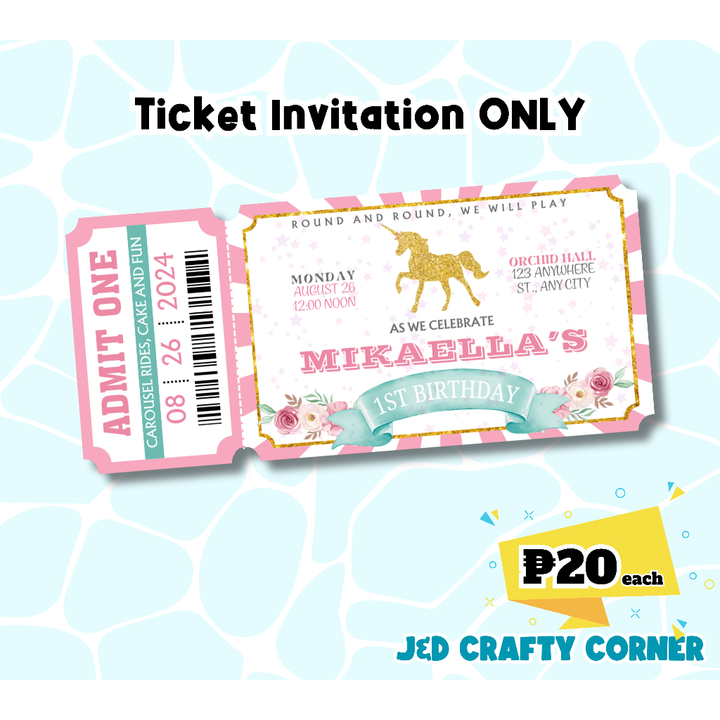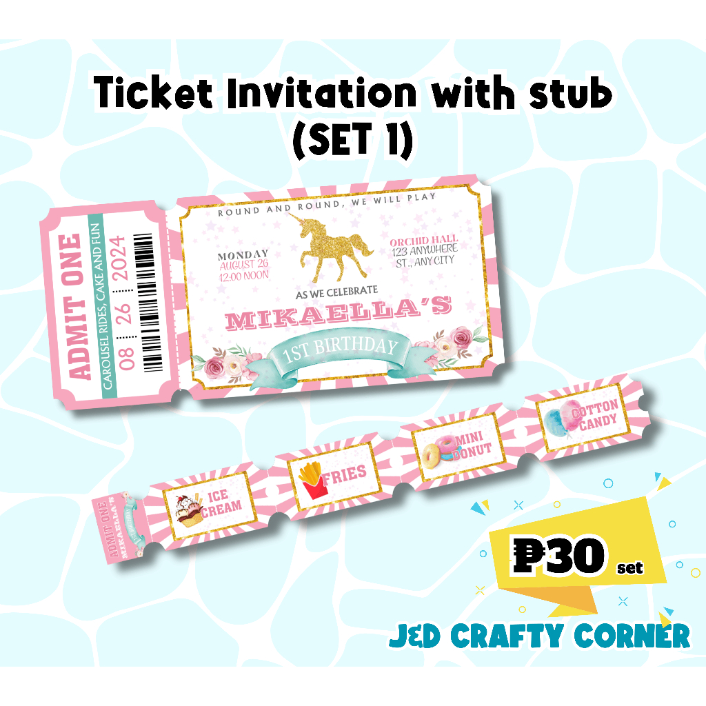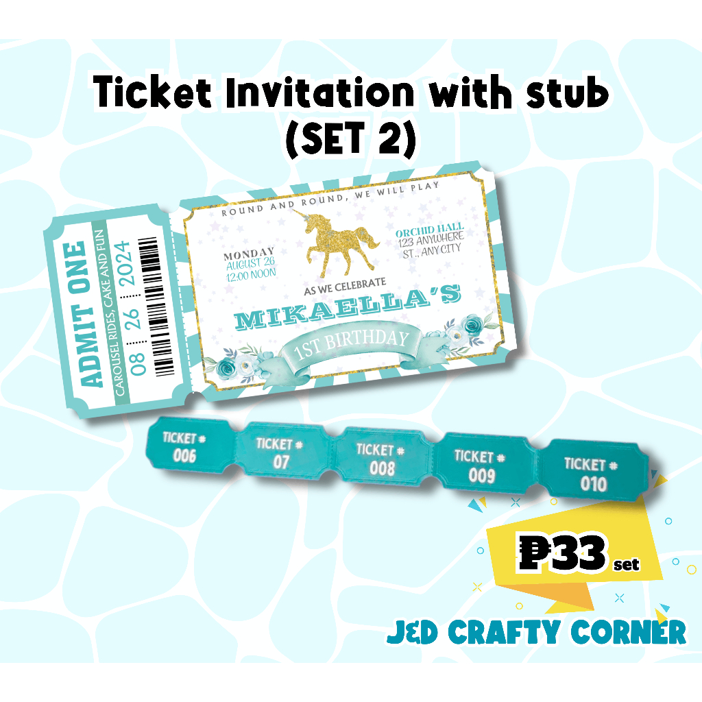 Ticket Invitation with Stub (Personalized/Customized)