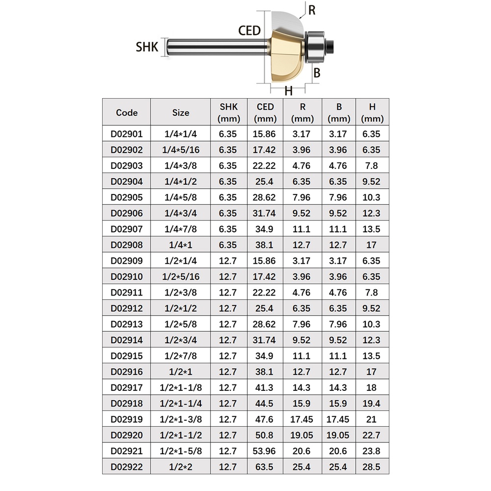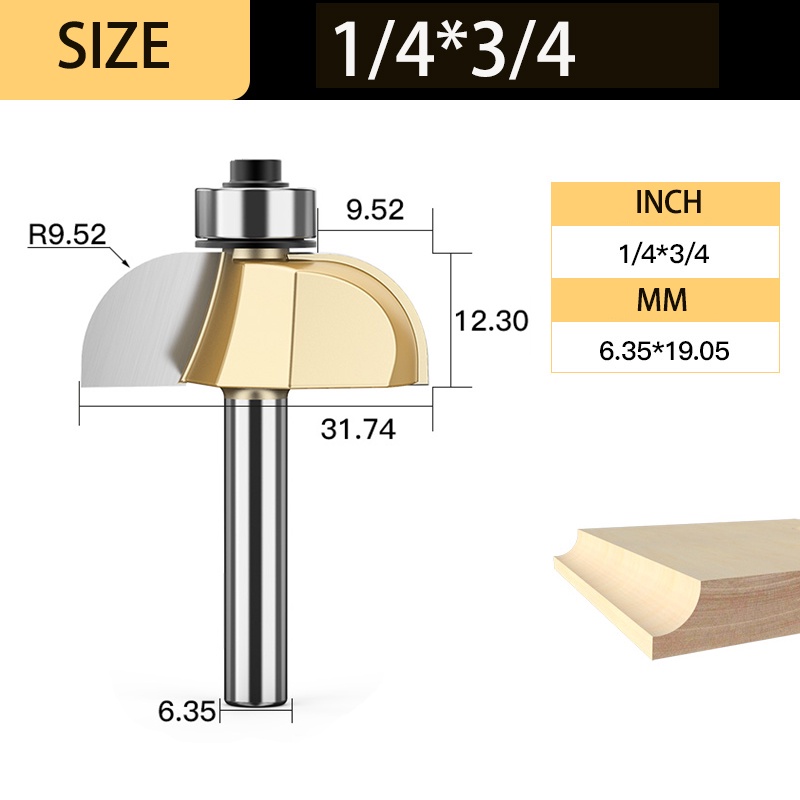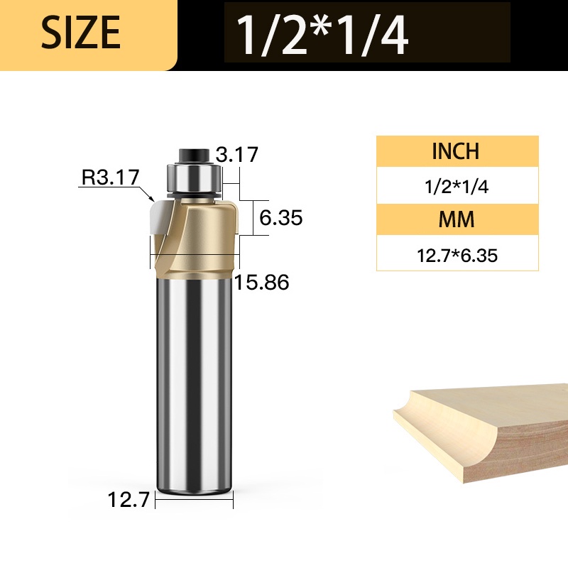 Tideway Professional Grade Chamfer Router Bit Tungsten Carbide Chamfering Milling Cutter Woodworking Tool Round Cove Bit Bearing