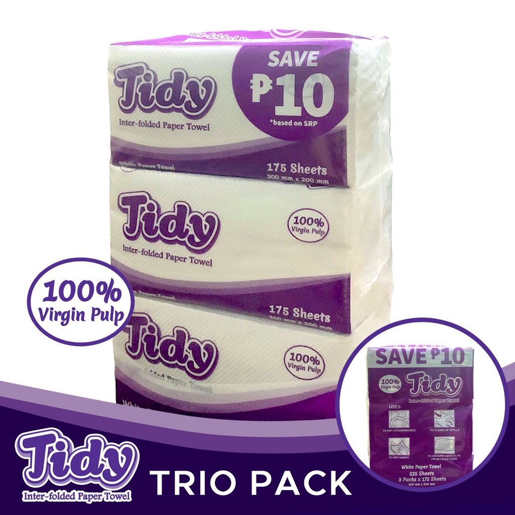 Tidy Trio Pack Inter-Folded Paper Towel White 175 Sheets