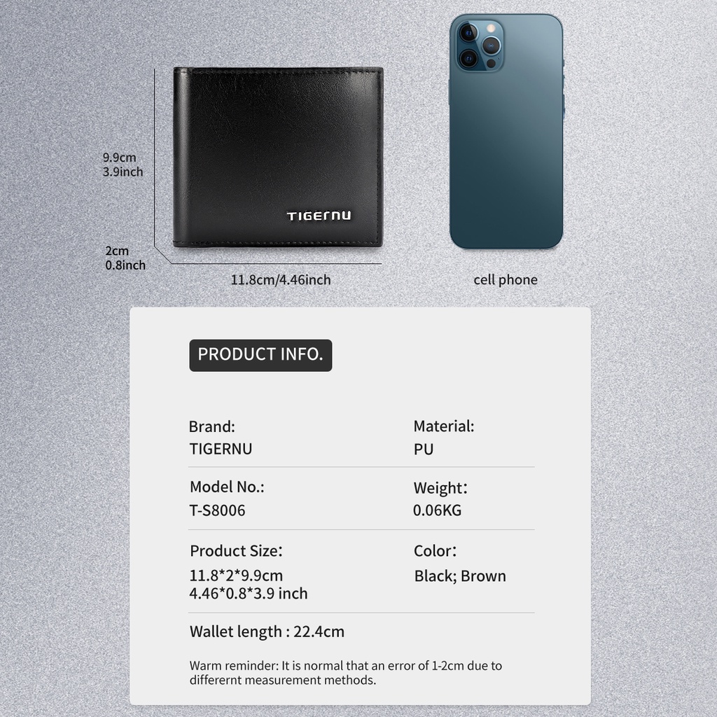 Tigernu 8006 Rfid Blocking Short Wallet Bi-Fold Anti Theft Pu Purse With Gift Box
