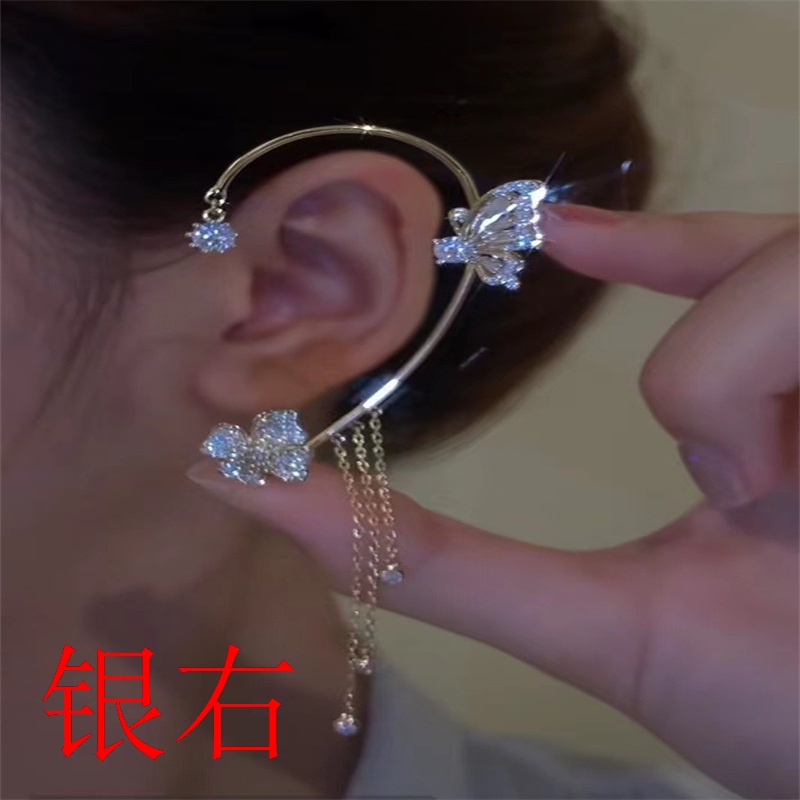 Tik Tok hot selling net red same style earrings fashion flash diamond leaf feather zircon ear clip butterfly flower no ear hole tassel women ear hanging gift jewelry