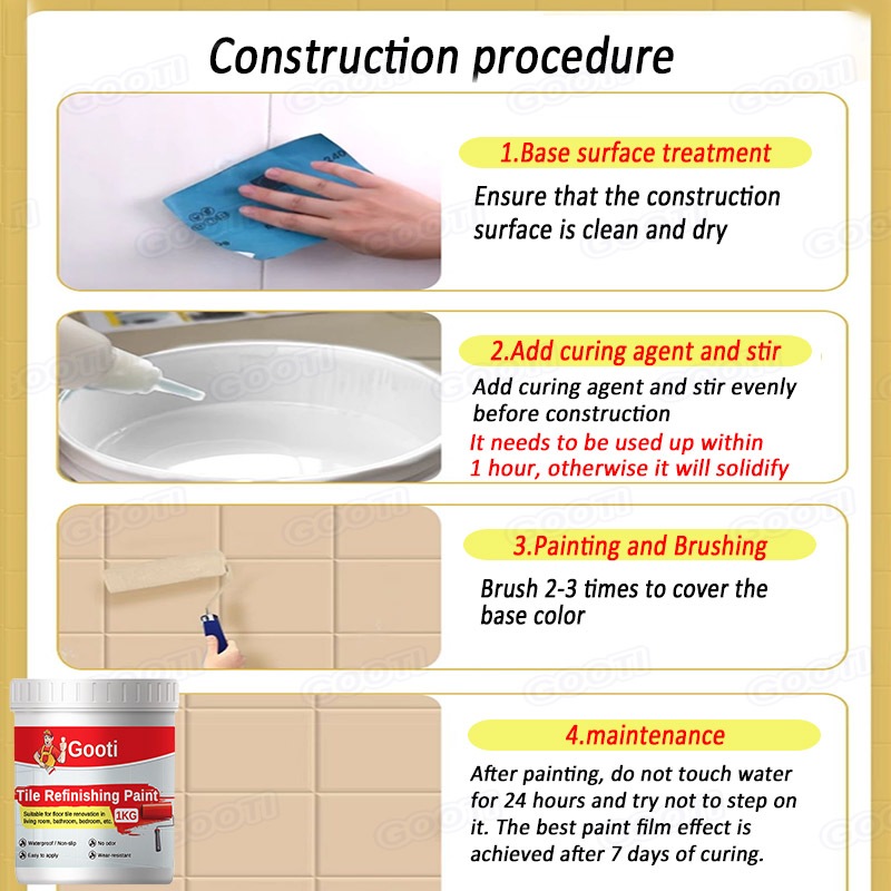 Tile Refinishing Paint Universal Color Change Paint For Bathroom Kitchen Waterproof Wear-Resistant Durable Water-Based Ceramic Tile Paint Coating