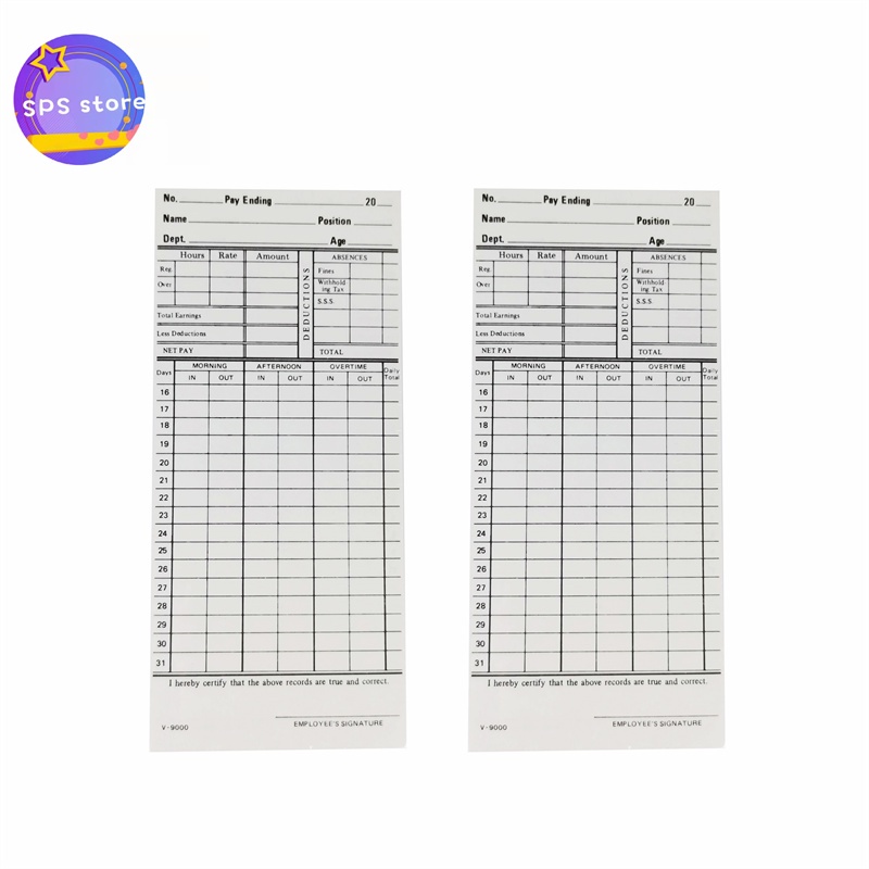 Time Card 100s Model 9000 Timecard PER PACK SPS COD