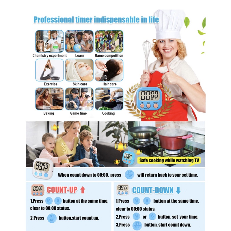 Timer Digital LCD Display Screen Alarm Clock Countdown Reminder Multi-purpose Time Management