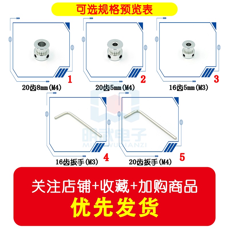 Timing pulley 2GT-20 teeth 16 teeth bandwidth 6mm inner hole 5/8mm GT2 drive pulley