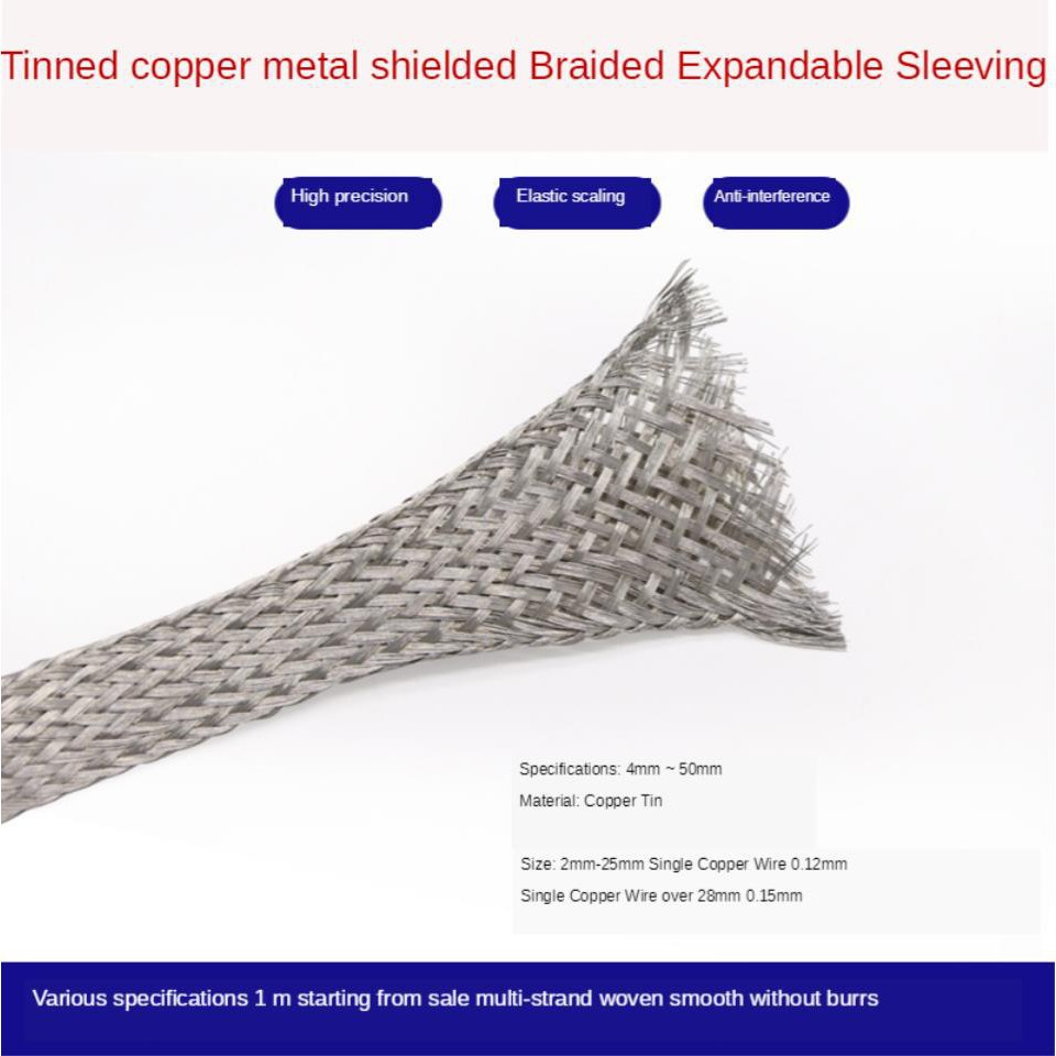 Tinned Copper Braided Grounding Wire Expandable Sleeving Cable Sheath Audio Speaker Signal Line Anti-interference Sleeve